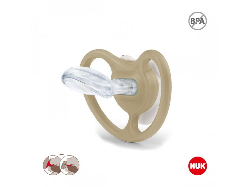 Dojčenský silikónový cumlík NUK Space Disney Mickey Mouse 1 / box 6-18 mesiacov s krásnym farebným obrázkom zvieratka. Nový cumlík Space s inovatívnym, moderným dizajnom umožňuje jemnej detskej pokožke dýchať. Špeciálne určený pre citlivú pokožku dieťaťa a má robustný, znovu použiteľný box pre uskladnenie, prepravu a hygienickú sterilizáciu v mikrovlnnej rúre. Cumlík je vyrobený z vysoko kvalitného plastu a silikónového cumlíka. Výhodou silikónu je to, že je bez zápachu a ľahko sa čistí. Neobsahuje BPA. Všetky NUK cumlíky sú pravidelne testované a sledované nezávislými inštitútmi.Dodatočné parametre