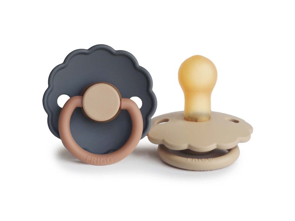Cumlíky sú vyrobené z prírodného kaučuku, pričom ich tvar je zakrivený jemne smerom von, aby sa zabránilo podráždeniu pokožky. Každý cumlík je strojovo testovaný na závadnosť, aby sa k našim najdôležitejším zákazníkom dostal vždy perfektný produkt. Pre väčšiu bezpečnosť sú v štíte prítomné vzduchové otvory. FRIGG je 100% dizajnovaný a vyrobený v Dánsku ako jediná značka cumlíkov na svete! Každý cumlík je zároveň vyrobený na princípe zero-waste, čím sa minimalizuje odpad materiálu vďaka možnosti recyklácie. Cumlíky sú vyrábané s maximálnym ohľadom na životné prostredie, a zároveň s dôrazom na uspokojenie potrieb najmenších detí. FRIGG kladie dôraz aj na bezpečnosť - cumlíky sú vyrábané bez BPA, PVC a ftalátov, každý cumlík podstupuje stretch a vacuum test pred uvedením do predaja a sú vyrábané podľa najprísnejšej normy EN1400-A2. Spoznajte svet značky FRIGG, inšpirovaný bohyňou zeme, vzduchu a plodnosti podľa severskej mytológie a nechajte sa zlákať dokonalosťou tvarov a farieb. Cumlíky FRIGG Daisy s vrúbkovanými okrajmi, ktoré napodobňujú lupene kvetov, sú základom elegantného dizajnu. Kvetinové a moderné detaily upútajú pozornosť každej štýlovej mamičky. Vďaka tomu sa FRIGG perfektne hodí pre dnešné matky, ktoré pri výbere základných potrieb pre bábätko prikladajú veľký význam klasickému dizajnu s modernými prvkami. Vlastnosti: - 100% navrhnuté v Dánsku - 100% vyrobené v Dánsku - každý cumlík musí prejsť naťahovacím a vákuovým testom - materiál štítu: Polypropylén (PP) - bezpečnostná norma: EN1400 + test A2 Podrobnosti o kaučukových cumlíkoch veľkosti 1: - materiál: 100% prírodný kaučuk - veľkosť: 27 mm - odporúčaný vek: 0-6 mesiacovDodatočné parametre