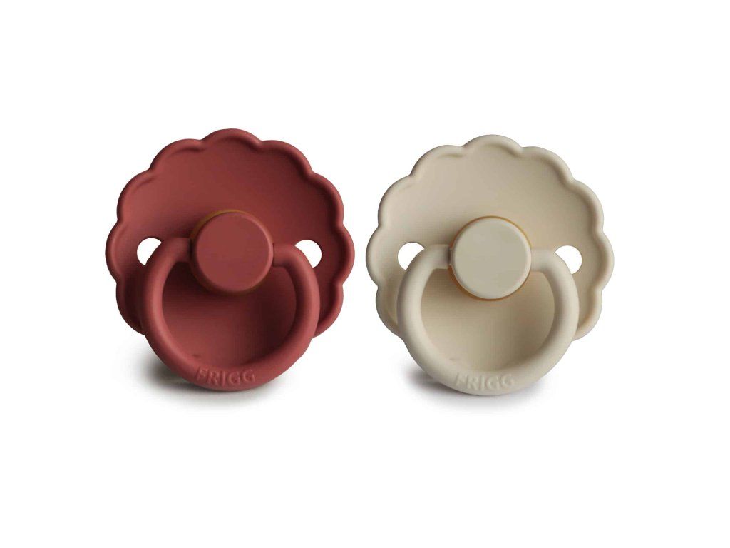 Cumlíky sú vyrobené z prírodného kaučuku, pričom ich tvar je zakrivený jemne smerom von, aby sa zabránilo podráždeniu pokožky. Každý cumlík je strojovo testovaný na závadnosť, aby sa k našim najdôležitejším zákazníkom dostal vždy perfektný produkt. Pre väčšiu bezpečnosť sú v štíte prítomné vzduchové otvory. FRIGG je 100% dizajnovaný a vyrobený v Dánsku ako jediná značka cumlíkov na svete! Každý cumlík je zároveň vyrobený na princípe zero-waste, čím sa minimalizuje odpad materiálu vďaka možnosti recyklácie. Cumlíky sú vyrábané s maximálnym ohľadom na životné prostredie, a zároveň s dôrazom na uspokojenie potrieb najmenších detí. FRIGG kladie dôraz aj na bezpečnosť - cumlíky sú vyrábané bez BPA, PVC a ftalátov, každý cumlík podstupuje stretch a vacuum test pred uvedením do predaja a sú vyrábané podľa najprísnejšej normy EN1400-A2. Spoznajte svet značky FRIGG, inšpirovaný bohyňou zeme, vzduchu a plodnosti podľa severskej mytológie a nechajte sa zlákať dokonalosťou tvarov a farieb. Cumlíky FRIGG Daisy s vrúbkovanými okrajmi, ktoré napodobňujú lupene kvetov, sú základom elegantného dizajnu. Kvetinové a moderné detaily upútajú pozornosť každej štýlovej mamičky. Vďaka tomu sa FRIGG perfektne hodí pre dnešné matky, ktoré pri výbere základných potrieb pre bábätko prikladajú veľký význam klasickému dizajnu s modernými prvkami. Vlastnosti: - 100% navrhnuté v Dánsku - 100% vyrobené v Dánsku - každý cumlík musí prejsť naťahovacím a vákuovým testom - materiál štítu: Polypropylén (PP) - bezpečnostná norma: EN1400 + test A2 Podrobnosti o kaučukových cumlíkoch veľkosti 1: - materiál: 100% prírodný kaučuk - veľkosť: 27 mm - odporúčaný vek: 0-6 mesiacovDodatočné parametre