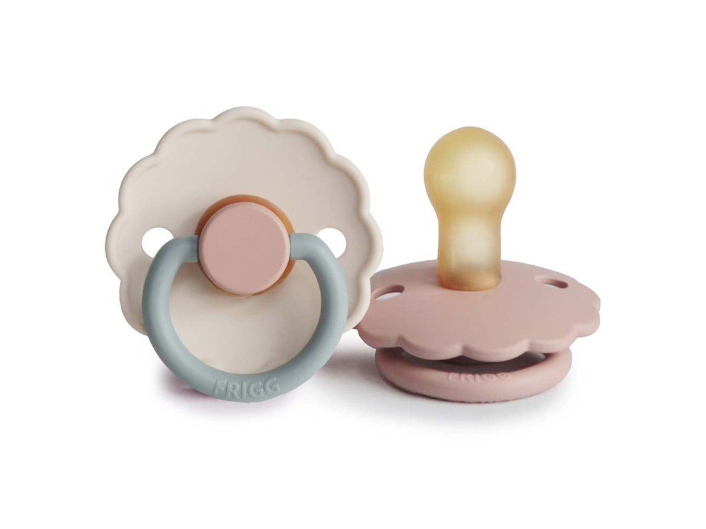 Cumlíky sú vyrobené z prírodného kaučuku, pričom ich tvar je zakrivený jemne smerom von, aby sa zabránilo podráždeniu pokožky. Každý cumlík je strojovo testovaný na závadnosť, aby sa k našim najdôležitejším zákazníkom dostal vždy perfektný produkt. Pre väčšiu bezpečnosť sú v štíte prítomné vzduchové otvory. FRIGG je 100% dizajnovaný a vyrobený v Dánsku ako jediná značka cumlíkov na svete! Každý cumlík je zároveň vyrobený na princípe zero-waste, čím sa minimalizuje odpad materiálu vďaka možnosti recyklácie. Cumlíky sú vyrábané s maximálnym ohľadom na životné prostredie, a zároveň s dôrazom na uspokojenie potrieb najmenších detí. FRIGG kladie dôraz aj na bezpečnosť - cumlíky sú vyrábané bez BPA, PVC a ftalátov, každý cumlík podstupuje stretch a vacuum test pred uvedením do predaja a sú vyrábané podľa najprísnejšej normy EN1400-A2. Spoznajte svet značky FRIGG, inšpirovaný bohyňou zeme, vzduchu a plodnosti podľa severskej mytológie a nechajte sa zlákať dokonalosťou tvarov a farieb. Cumlíky FRIGG Daisy s vrúbkovanými okrajmi, ktoré napodobňujú lupene kvetov, sú základom elegantného dizajnu. Kvetinové a moderné detaily upútajú pozornosť každej štýlovej mamičky. Vďaka tomu sa FRIGG perfektne hodí pre dnešné matky, ktoré pri výbere základných potrieb pre bábätko prikladajú veľký význam klasickému dizajnu s modernými prvkami. Vlastnosti: - 100% navrhnuté v Dánsku - 100% vyrobené v Dánsku - každý cumlík musí prejsť naťahovacím a vákuovým testom - materiál štítu: Polypropylén (PP) - bezpečnostná norma: EN1400 + test A2 Podrobnosti o kaučukových cumlíkoch veľkosti 1: - materiál: 100% prírodný kaučuk - veľkosť: 27 mm - odporúčaný vek: 0-6 mesiacovDodatočné parametre