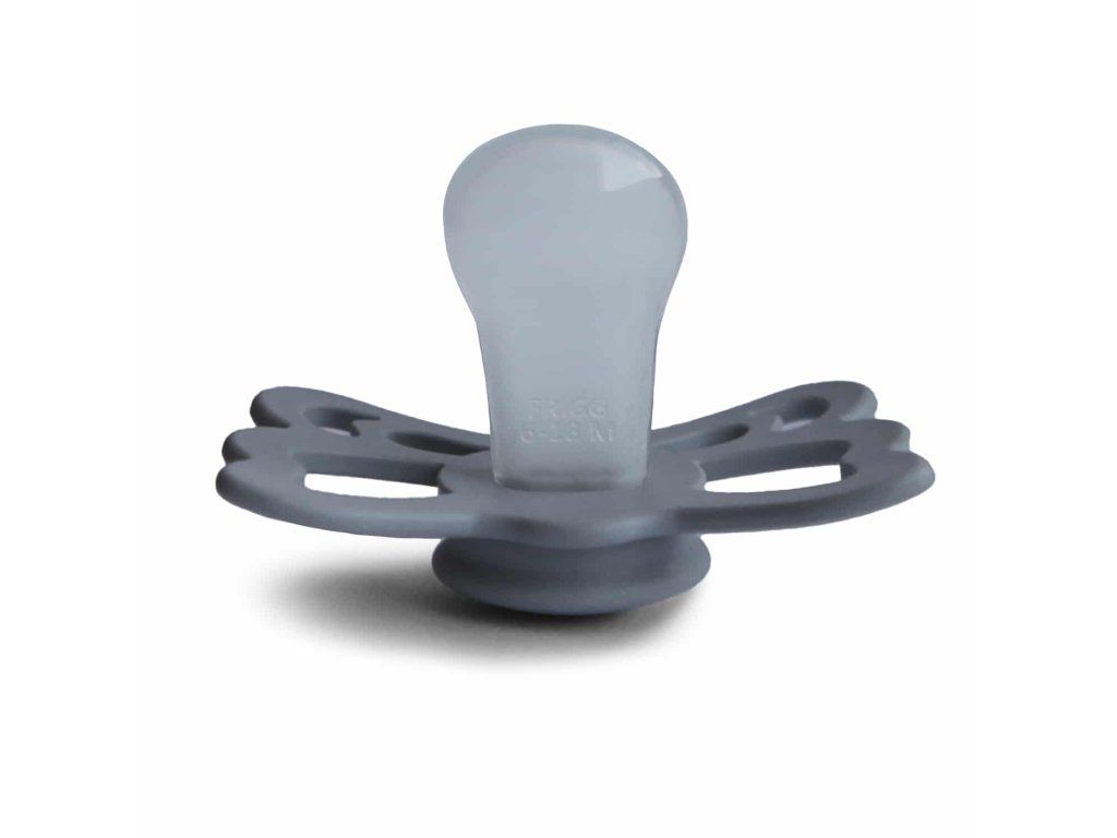 FRIGG Butterfly sú anatomické cumlíky, ktoré kopírujú tvar úst. Cumlíky sú špeciálne navrhnuté tak, aby vyvíjali menší tlak na podnebie, ďasná a čeľuste, vďaka čomu sa zaraďujú k najšetrnejším typom cumlíkov. Tým sa znižuje riziko vývoja krivých zubov. Ortodontický dizajn je ideálny na podporu správneho vývoja detských zúbkov, čeľuste a podnebia. Cumlíky sú vyrobené zo silikónu medicínskeho stupňa s novým povrchom SilkySoft™, ktorý predstavuje najvyššiu kvalitu silikónu s ešte mäkším povrchom ako predtým, pre prirodzenejšie satie a ešte bezpečnejšiu voľbu pre detské podnebie a ďasná. Každý cumlík je strojovo testovaný na závadnosť, aby sa k našim najdôležitejším zákazníkom dostal vždy perfektný produkt. Tvar cumlíkov FRIGG Butterfly pripomína motýľa. Štít so zvlnenými okrajmi má veľké vzduchové otvory pre väčšiu bezpečnosť a jeho okrúhly stred krásne zvýrazňuje eleganciu cumlíkov. Nový Click-lock™ systém odlišuje cumlíky FRIGG od akéhokoľvek iného cumlíkov na trhu. Vďaka novému 4-krokovému procesu spájania jednotlivých častí cumlíkov je možné cumlíky zostaviť jednoduchým kliknutím, bez použitia akejkoľvek sily. Vďaka tomu sú cumlíky ešte odolnejšie ako predtým. FRIGG je 100% dizajnovaný a vyrobený v Dánsku ako jediná značka cumlíkov na svete! Každý cumlík je zároveň vyrobený na princípe zero-waste, čím sa minimalizuje odpad materiálu vďaka možnosti recyklácie. Cumlíky sú vyrábané s maximálny ohľadom na životné prostredie, a zároveň s dôrazom na uspokojenie potrieb najmenších detí. FRIGG kladie dôraz aj na bezpečnosť - cumlíky sú vyrábané bez BPA, PVC a ftalátov, každý cumlík podstupuje stretch a vacuum test pred uvedením do predaja a sú vyrábané podľa najprísnejšej normy EN1400-A2. Cumlíky FRIGG Butterfly sú inšpirované krásnym motýľom. Nielen svojím vzhľadom, ale aj magickou premenou. Aby sa húsenica stala motýľom, prechádza procesom transformácie. Počas tohto procesu húsenica zostáva v kukle a nakoniec rozkvitne ako krásny motýľ. Táto magická premena je symbolom rozvoja života. Aj dieťatko prechádza rôznymi vývojovými štádiami v matkinom lone a na konci transformačného procesu sa dieťa narodí, aby rozkvitlo vo veľkom svete. Spoznajte svet značky FRIGG, inšpirovaný bohyňou zeme, vzduchu a plodnosti podľa severskej mytológie a nechajte sa zlákať dokonalosťou tvarov a farieb. Vlastnosti:- 100% navrhnuté v Dánsku