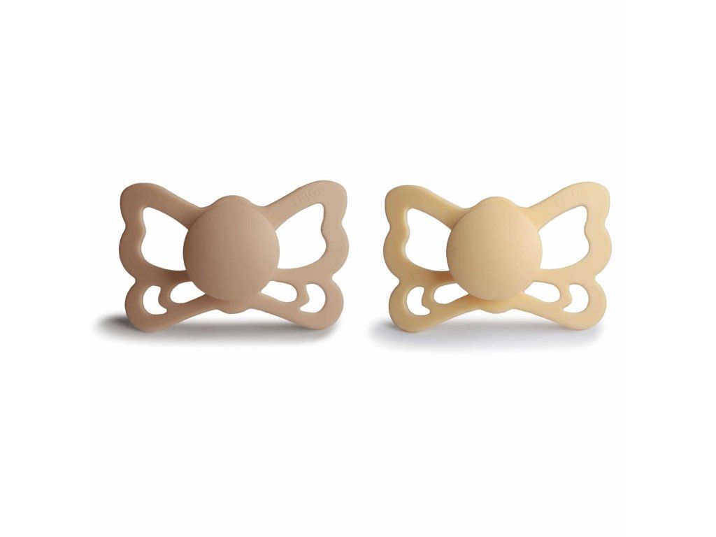 DVOJBALENIE ANATOMICKÝCH CUMLÍKOV FRIGG BUTTERFLY PALE DAFFODIL/ SILKY SATIN, 6-18M, SILIKÓN