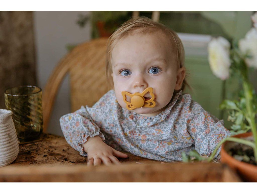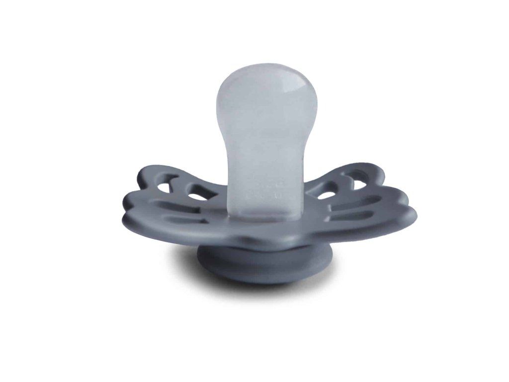 FRIGG Butterfly sú anatomické cumlíky, ktoré kopírujú tvar úst. Cumlíky sú špeciálne navrhnuté tak, aby vyvíjali menší tlak na podnebie, ďasná a čeľuste, vďaka čomu sa zaraďujú k najšetrnejším typom cumlíkov. Tým sa znižuje riziko vývoja krivých zubov. Ortodontický dizajn je ideálny na podporu správneho vývoja detských zúbkov, čeľuste a podnebia. Cumlíky sú vyrobené zo silikónu medicínskeho stupňa s novým povrchom SilkySoft™, ktorý predstavuje najvyššiu kvalitu silikónu s ešte mäkším povrchom ako predtým, pre prirodzenejšie satie a ešte bezpečnejšiu voľbu pre detské podnebie a ďasná. Každý cumlík je strojovo testovaný na závadnosť, aby sa k našim najdôležitejším zákazníkom dostal vždy perfektný produkt. Tvar cumlíkov FRIGG Butterfly pripomína motýľa. Štít so zvlnenými okrajmi má veľké vzduchové otvory pre väčšiu bezpečnosť a jeho okrúhly stred krásne zvýrazňuje eleganciu cumlíkov. Nový Click-lock™ systém odlišuje cumlíky FRIGG od akéhokoľvek iného cumlíkov na trhu. Vďaka novému 4-krokovému procesu spájania jednotlivých častí cumlíkov je možné cumlíky zostaviť jednoduchým kliknutím, bez použitia akejkoľvek sily. Vďaka tomu sú cumlíky ešte odolnejšie ako predtým. FRIGG je 100% dizajnovaný a vyrobený v Dánsku ako jediná značka cumlíkov na svete! Každý cumlík je zároveň vyrobený na princípe zero-waste, čím sa minimalizuje odpad materiálu vďaka možnosti recyklácie. Cumlíky sú vyrábané s maximálny ohľadom na životné prostredie, a zároveň s dôrazom na uspokojenie potrieb najmenších detí. FRIGG kladie dôraz aj na bezpečnosť - cumlíky sú vyrábané bez BPA, PVC a ftalátov, každý cumlík podstupuje stretch a vacuum test pred uvedením do predaja a sú vyrábané podľa najprísnejšej normy EN1400-A2. Cumlíky FRIGG Butterfly sú inšpirované krásnym motýľom. Nielen svojím vzhľadom, ale aj magickou premenou. Aby sa húsenica stala motýľom, prechádza procesom transformácie. Počas tohto procesu húsenica zostáva v kukle a nakoniec rozkvitne ako krásny motýľ. Táto magická premena je symbolom rozvoja života. Aj dieťatko prechádza rôznymi vývojovými štádiami v matkinom lone a na konci transformačného procesu sa dieťa narodí, aby rozkvitlo vo veľkom svete. Spoznajte svet značky FRIGG, inšpirovaný bohyňou zeme, vzduchu a plodnosti podľa severskej mytológie a nechajte sa zlákať dokonalosťou tvarov a farieb. Vlastnosti:- 100% navrhnuté v Dánsku