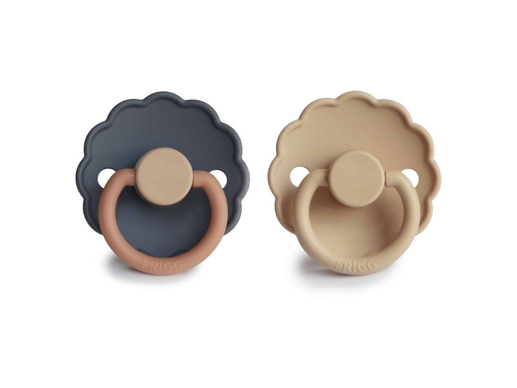 Cumlík je vyrobený zo silikónu medicínskeho stupňa s novým povrchom SilkySoft™, ktorý predstavuje najvyššiu kvalitu silikónu s ešte mäkším povrchom ako predtým, pre prirodzenejšie satie a ešte bezpečnejšiu voľbu pre detské podnebie a ďasná. Každý cumlík je strojovo testovaný na závadnosť, aby sa k našim najdôležitejším zákazníkom dostal vždy perfektný produkt. Tvar štítu je zakrivený jemne smerom von, aby sa zabránilo podráždeniu pokožky. Pre väčšiu bezpečnosť sú v štíte prítomné vzduchové otvory. Nový Click-lock™ systém odlišuje cumlík FRIGG od akéhokoľvek iného cumlíku na trhu. Vďaka novému 4-krokovému procesu spájania jednotlivých častí cumlíka je možné cumlík zostaviť jednoduchým kliknutím, bez použitia akejkoľvek sily. Vďaka tomu je cumlík ešte odolnejší ako predtým. FRIGG je 100% dizajnovaný a vyrobený v Dánsku ako jediná značka cumlíkov na svete! Každý cumlík je zároveň vyrobený na princípe zero-waste, čím sa minimalizuje odpad materiálu vďaka možnosti recyklácie. Cumlíky sú vyrábané s maximálny ohľadom na životné prostredie, a zároveň s dôrazom na uspokojenie potrieb najmenších detí. FRIGG kladie dôraz aj na bezpečnosť - cumlíky sú vyrábané bez BPA, PVC a ftalátov, každý cumlík podstupuje stretch a vacuum test pred uvedením do predaja a sú vyrábané podľa najprísnejšej normy EN1400-A2. Spoznajte svet značky FRIGG, inšpirovaný bohyňou zeme, vzduchu a plodnosti podľa severskej mytológie a nechajte sa zlákať dokonalosťou tvarov a farieb. Cumlík FRIGG Daisy s vrúbkovanými okrajmi, ktoré napodobňujú lupene kvetov, je základom elegantného dizajnu. Kvetinové a moderné detaily upútajú pozornosť každej štýlovej mamičky. Vďaka tomu sa FRIGG perfektne hodí pre dnešné matky, ktoré pri výbere základných potrieb pre bábätko prikladajú veľký význam klasickému dizajnu s modernými prvkami. Vlastnosti:- 100% navrhnuté v Dánsku
