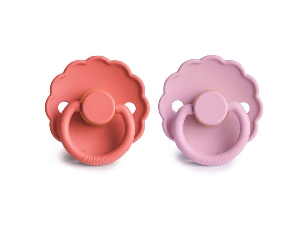 Cumlíky FRIGG Daisy s vrúbkovanými okrajmi, ktoré napodobňujú lupene kvetov, sú podstatou elegantného dizajnu. Kvetinové a moderné detaily upútajú pozornosť každej štýlovo orientovanej mamičky. Vďaka tomu sa FRIGG perfektne hodí pre dnešné matky, ktoré pri výbere základných potrieb pre bábätko prikladajú veľký význam klasickému dizajnu s modernými prvkami. Cumlík FRIGG Daisy plný šarmu je dostupný v monochromatických aj zmiešaných farbách. FRIGG predstavuje novú farbu: POPPY & LUPINE Kvet vlčieho bôbu s týčiacimi sa hrotmi zdobenými zhlukmi kvetov podobných hrášku je skutočným vizuálnym potešením a inšpiráciou pre túto novú farbu FRIGG; veľmi pekný fialový pastelový odtieň. Fascinujúci kvet lupiny vnáša do dizajnu FRIGG Daisy nádych podmanivej krásy. FRIGG Daisy je cumlík s okrúhlym tvarom. Okrúhly cumlík tvarom aj materiálom pripomína materinský prsník. Vysvetlením je, že keď sa dieťa chystá dojčiť, jazyk sa zroluje okolo bradavky a vytvorí podtlak, ktorý spôsobí tok mlieka. Keď dieťa saje okrúhly cumlík, gúľa okolo neho jazyk rovnako. Okrúhly tvar odporúčajú detskí chiropraktici a pôrodnice v Dánsku. Detaily cumlíka FRIGG:- 100% navrhnuté a vyrobené v Dánsku