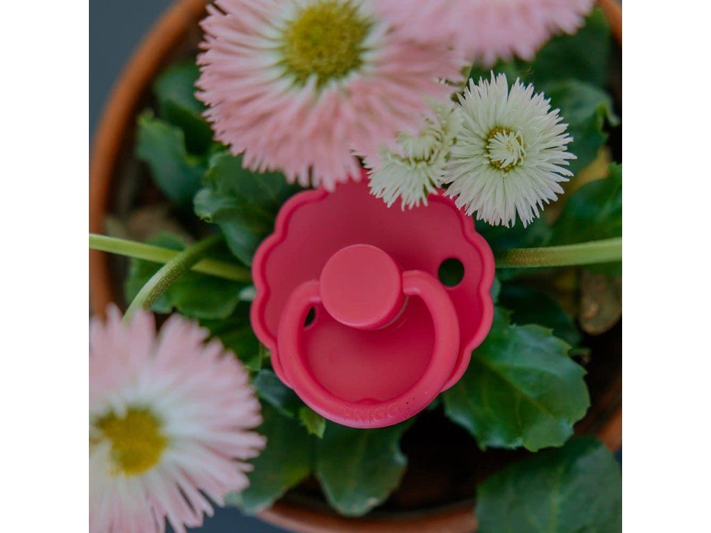 Cumlíky FRIGG Daisy s vrúbkovanými okrajmi, ktoré napodobňujú lupene kvetov, sú podstatou elegantného dizajnu. Kvetinové a moderné detaily upútajú pozornosť každej štýlovo orientovanej mamičky. Vďaka tomu sa FRIGG perfektne hodí pre dnešné matky, ktoré pri výbere základných potrieb pre bábätko prikladajú veľký význam klasickému dizajnu s modernými prvkami. Cumlík FRIGG Daisy plný šarmu je dostupný v monochromatických aj zmiešaných farbách. FRIGG Daisy je cumlík s okrúhlym tvarom. Okrúhly cumlík tvarom aj materiálom pripomína materinský prsník. Vysvetlením je, že keď sa dieťa chystá dojčiť, jazyk sa zroluje okolo bradavky a vytvorí podtlak, ktorý spôsobí tok mlieka. Keď dieťa saje okrúhly cumlík, gúľa okolo neho jazyk rovnako. Okrúhly tvar odporúčajú detskí chiropraktici a pôrodnice v Dánsku. Detaily cumlíka FRIGG:- 100% navrhnuté a vyrobené v Dánsku