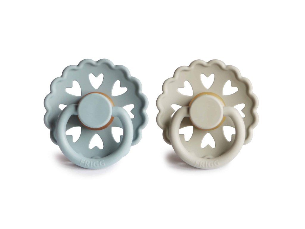 Cumlíky sú vyrobené z prírodného kaučuku, pričom ich tvar je zakrivený jemne smerom von, aby sa zabránilo podráždeniu pokožky. Každý cumlík je strojovo testovaný na závadnosť, aby sa k našim najdôležitejším zákazníkom dostal vždy perfektný produkt. Tvar štítu je zakrivený jemne smerom von, aby sa zabránilo podráždeniu pokožky. Pre väčšiu bezpečnosť sú v štíte prítomné vzduchové otvory. Nový Click-lock™ systém odlišuje cumlík FRIGG od akéhokoľvek iného cumlíku na trhu. Vďaka novému 4-krokovému procesu spájania jednotlivých častí cumlíka je možné cumlík zostaviť jednoduchým kliknutím, bez použitia akejkoľvek sily. Vďaka tomu je cumlík ešte odolnejší ako predtým. FRIGG je 100% dizajnovaný a vyrobený v Dánsku ako jediná značka cumlíkov na svete! Každý cumlík je zároveň vyrobený na princípe zero-waste, čím sa minimalizuje odpad materiálu vďaka možnosti recyklácie. Cumlíky sú vyrábané s maximálny ohľadom na životné prostredie, a zároveň s dôrazom na uspokojenie potrieb najmenších detí. FRIGG kladie dôraz aj na bezpečnosť - cumlíky sú vyrábané bez BPA, PVC a ftalátov, každý cumlík podstupuje stretch a vacuum test pred uvedením do predaja a sú vyrábané podľa najprísnejšej normy EN1400-A2. Spoznajte svet značky FRIGG, inšpirovaný bohyňou zeme, vzduchu a plodnosti podľa severskej mytológie a nechajte sa zlákať dokonalosťou tvarov a farieb. Kolekcia cumlíkov FRIGG Fairytale je inšpirovaná umeleckou tvorbou dánskeho autora H.C. Andersena. Vrúbkované okraje a malé srdiečka vo vnútri štítu napodobňujú jeden z jeho papierových výstrižkov. Každá farba cumlíka je pomenovaná podľa jeho známych rozprávok, ktoré dodávajú cumlíkom nádych fantázie. Tento mimoriadne krásny cumlík, s moderným dizajnom a elegantnými detailmi, upúta pozornosť každej štýlovej mamičky. Vlastnosti:- 100% navrhnuté v Dánsku