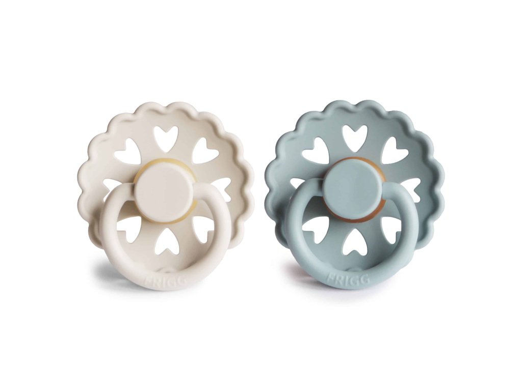 Cumlíky sú vyrobené z prírodného kaučuku, pričom ich tvar je zakrivený jemne smerom von, aby sa zabránilo podráždeniu pokožky. Každý cumlík je strojovo testovaný na závadnosť, aby sa k našim najdôležitejším zákazníkom dostal vždy perfektný produkt. Tvar štítu je zakrivený jemne smerom von, aby sa zabránilo podráždeniu pokožky. Pre väčšiu bezpečnosť sú v štíte prítomné vzduchové otvory. Nový Click-lock™ systém odlišuje cumlík FRIGG od akéhokoľvek iného cumlíku na trhu. Vďaka novému 4-krokovému procesu spájania jednotlivých častí cumlíka je možné cumlík zostaviť jednoduchým kliknutím, bez použitia akejkoľvek sily. Vďaka tomu je cumlík ešte odolnejší ako predtým. FRIGG je 100% dizajnovaný a vyrobený v Dánsku ako jediná značka cumlíkov na svete! Každý cumlík je zároveň vyrobený na princípe zero-waste, čím sa minimalizuje odpad materiálu vďaka možnosti recyklácie. Cumlíky sú vyrábané s maximálny ohľadom na životné prostredie, a zároveň s dôrazom na uspokojenie potrieb najmenších detí. FRIGG kladie dôraz aj na bezpečnosť - cumlíky sú vyrábané bez BPA, PVC a ftalátov, každý cumlík podstupuje stretch a vacuum test pred uvedením do predaja a sú vyrábané podľa najprísnejšej normy EN1400-A2. Spoznajte svet značky FRIGG, inšpirovaný bohyňou zeme, vzduchu a plodnosti podľa severskej mytológie a nechajte sa zlákať dokonalosťou tvarov a farieb. Kolekcia cumlíkov FRIGG Fairytale je inšpirovaná umeleckou tvorbou dánskeho autora H.C. Andersena. Vrúbkované okraje a malé srdiečka vo vnútri štítu napodobňujú jeden z jeho papierových výstrižkov. Každá farba cumlíka je pomenovaná podľa jeho známych rozprávok, ktoré dodávajú cumlíkom nádych fantázie. Tento mimoriadne krásny cumlík, s moderným dizajnom a elegantnými detailmi, upúta pozornosť každej štýlovej mamičky. Vlastnosti:- 100% navrhnuté v Dánsku