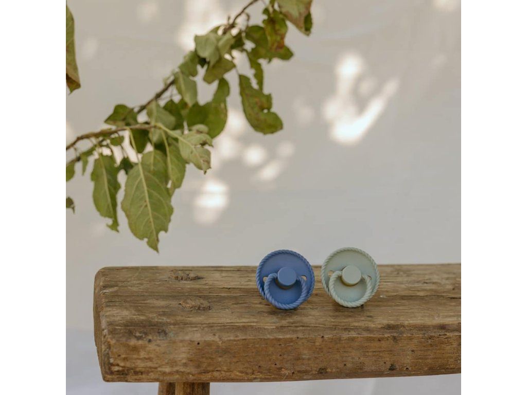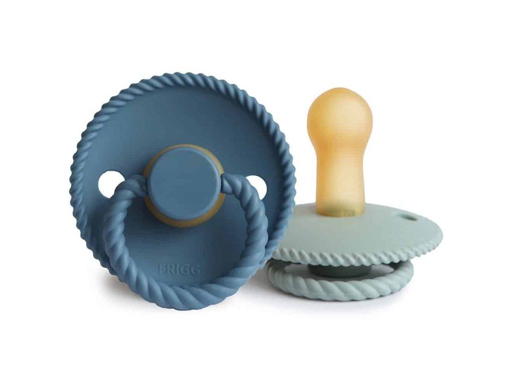 FRIGG Rope vás prinúti myslieť na dobrodružstvá zahŕňajúce sily, výšky a hĺbky. Lano je nevyhnutnou súčasťou pri turistike alebo lezení. Predstavuje bezpečnosť a stabilitu, keď sa aktivity stanú riskantnými alebo nepredvídateľnými. To ukazuje základnú inšpiráciu dizajnu cumlíka FRIGG Rope. Inšpirácia povrazom je zreteľná v dizajne cumlíka, pretože tenké povrazy obopína štít a hrubšie povrazy sú použité ako rúčka. FRIGG Rope je pre chlapcov aj dievčatá, ktorí milujú veľké dobrodružstvo. Cumlík FRIGG je 100% navrhnutý a vyrobený v Dánsku ako jediná značka cumlíkov na svete. FRIGG Rope je cumlík s okrúhlym tvarom cumlíka. Okrúhly cumlík tvarom aj materiálom pripomína materinský prsník. Vysvetlením je, že keď sa dieťa chystá dojčiť, jazyk sa zroluje okolo bradavky a vytvorí podtlak, ktorý spôsobí tok mlieka. Keď dieťa saje okrúhly cumlík, gúľa okolo neho jazyk rovnako. Okrúhly tvar odporúčajú detskí chiropraktici a pôrodnice v Dánsku. Detaily cumlíka FRIGG- 100% navrhnuté v Dánsku