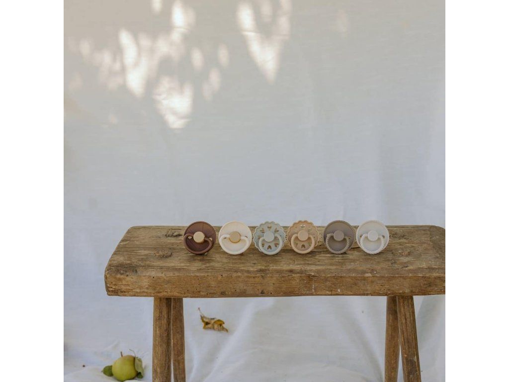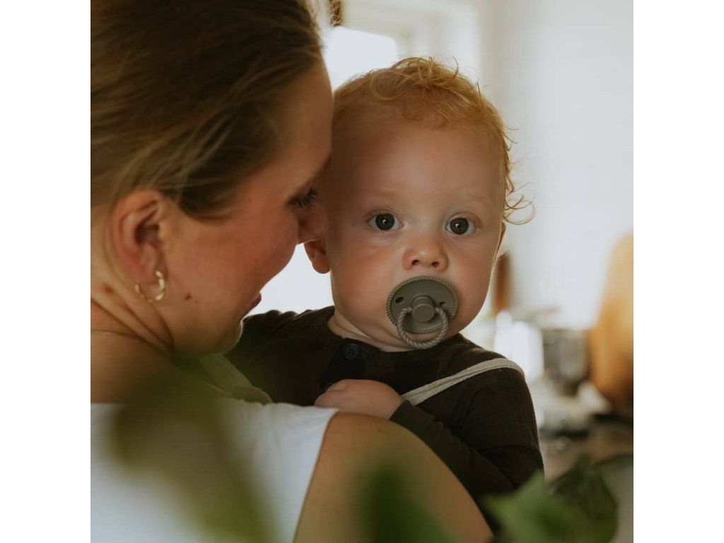 FRIGG Rope vás prinúti myslieť na dobrodružstvá zahŕňajúce silu. Lano je nevyhnutnou súčasťou pri turistike alebo lezení. Predstavuje bezpečnosť a stabilitu, keď sa aktivity stanú riskantnými alebo nepredvídateľnými. Toto je základnou inšpiráciou dizajnu cumlíka FRIGG Rope. Inšpirácia povrazom je zreteľná v dizajne cumlíka, pretože tenké povrazy obopínajú štít a hrubšie povrazy sú použité ako rúčka. FRIGG Rope je pre chlapcov aj dievčatá, ktorí milujú veľké dobrodružstvo. Okrúhly cumlík tvarom aj materiálom pripomína materinský prsník. Vysvetlením je, že keď sa dieťa chystá dojčiť, jazyk sa zroluje okolo bradavky a vytvorí podtlak, ktorý spôsobí tok mlieka. Keď dieťa saje okrúhly cumlík, gúľa okolo neho jazyk rovnako. Okrúhly tvar odporúčajú detskí chiropraktici a pôrodnice v Dánsku. Detaily cumlíka FRIGG- 100% navrhnuté v Dánsku