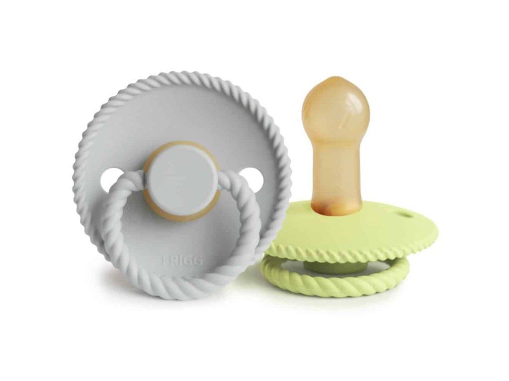 FRIGG Rope vás prinúti myslieť na dobrodružstvá zahŕňajúce sily, výšky a hĺbky. Lano je nevyhnutnou súčasťou pri turistike alebo lezení. Predstavuje bezpečnosť a stabilitu, keď sa aktivity stanú riskantnými alebo nepredvídateľnými. To ukazuje základnú inšpiráciu dizajnu cumlíka FRIGG Rope. Inšpirácia povrazom je zreteľná v dizajne cumlíka, pretože tenké povrazy obopína štít a hrubšie povrazy sú použité ako rúčka. FRIGG Rope je pre chlapcov aj dievčatá, ktorí milujú veľké dobrodružstvo... FRIGG predstavuje novú farbu: GREEN TEA Zelený čaj, ktorý pochádza z rastliny Camellia sinensis a je obľúbený pre svoju jemnú chuť v rôznych kultúrach, je inšpiráciou pre túto novú farbu FRIGG: jasne zelený odtieň, ktorý dodáva lano FRIGG štipku šťastia, optimizmu a sviežosti. cumlík. Cumlík FRIGG je 100% navrhnutý a vyrobený v Dánsku ako jediná značka cumlíkov na svete. FRIGG Rope je cumlík s okrúhlym tvarom cumlíka. Okrúhly cumlík tvarom aj materiálom pripomína materinský prsník. Vysvetlením je, že keď sa dieťa chystá dojčiť, jazyk sa zroluje okolo bradavky a vytvorí podtlak, ktorý spôsobí tok mlieka. Keď dieťa saje okrúhly cumlík, gúľa okolo neho jazyk rovnako. Okrúhly tvar odporúčajú detskí chiropraktici a pôrodnice v Dánsku. Detaily cumlíka FRIGG- 100% navrhnuté v Dánsku