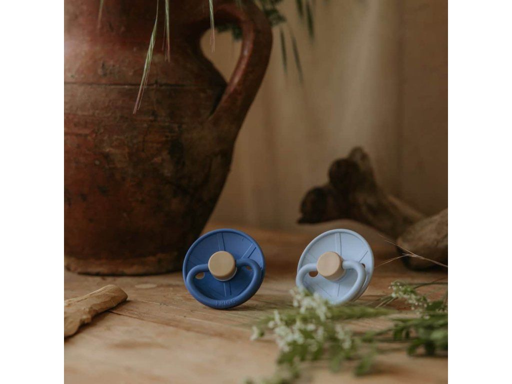Ako pocta severskej mytológii vrátane severskej bohyne Frigg, ktorá je inšpiráciou značky FRIGG, našim škandinávskym koreňom a mnohým vzrušujúcim príbehom o Vikingoch, bola vytvorená kolekcia Little Viking. Štít na cumlík je inšpirovaný vikingskými okrúhlymi štítmi, zdobenými symbolom Fehu z runovej abecedy. Fehu sa spája s plodnosťou a plodnosťou, hojnosťou a duchovným bohatstvom. Cumlík FRIGG Viking je vyrobený, aby chránil a poskytoval bezpečie malým zvedavým a odvážnym „Vikingom“ na celom svete. Kolekciu Little Viking tvorí 6 cumlíkov, každý pomenovaný po známej postave z doby Vikingov. Viking KNUD Inšpirovaný Canute Great (v dánčine „Knud den Store“), významným Vikingom a prominentným kráľom Dánska, Anglicka a Nórska na začiatku 11. storočia. Canute Veľký je známy pre jeho úspešné zjednotenie týchto regiónov do mocnej Severomorskej ríše, jeho efektívnu a stabilnú vládu a snahu integrovať svoje rôznorodé územia. Jeho vláda znamenala významné obdobie prosperity a vplyvu v histórii Vikingov. Knudova farba je vo farebnom svete FRIGG známa aj ako Powder Blue Viking HARALD Inšpirované Haraldom Bluetooth, ktorý vládol Dánsku a Nórsku v 10. storočí. Bol známy svojou snahou o zjednotenie dánskych kmeňov do jedného kráľovstva pod jeho vládou a zohral vplyvnú úlohu pri šírení kresťanstva v celej Škandinávii. Technológia Bluetooth, ktorú dnes používame, bola pomenovaná po ňom ako pocta jeho zjednocujúcim schopnostiam, pretože táto technológia umožňuje bezproblémové pripojenie rôznych zariadení. Haraldova farba je vo farebnom vesmíre FRIGG známa aj ako Ocean View Detaily cumlíka FRIGG:- 100% navrhnuté v Dánsku