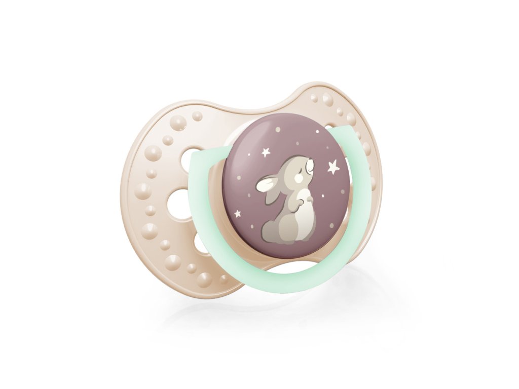 Dynamické cumlíky LOVI® boli vytvorené v spolupráci s neurologopedmi. Unikátny dizajn nerovnomernej vrstvy silikónu a symetrický tvar inšpirovaný matkinou bradavkou. Osviežujúce moderné vzory podčiarkujú svietiaci úchyt v tme.Night&Day cumlík – najdôležitejšie benefity: