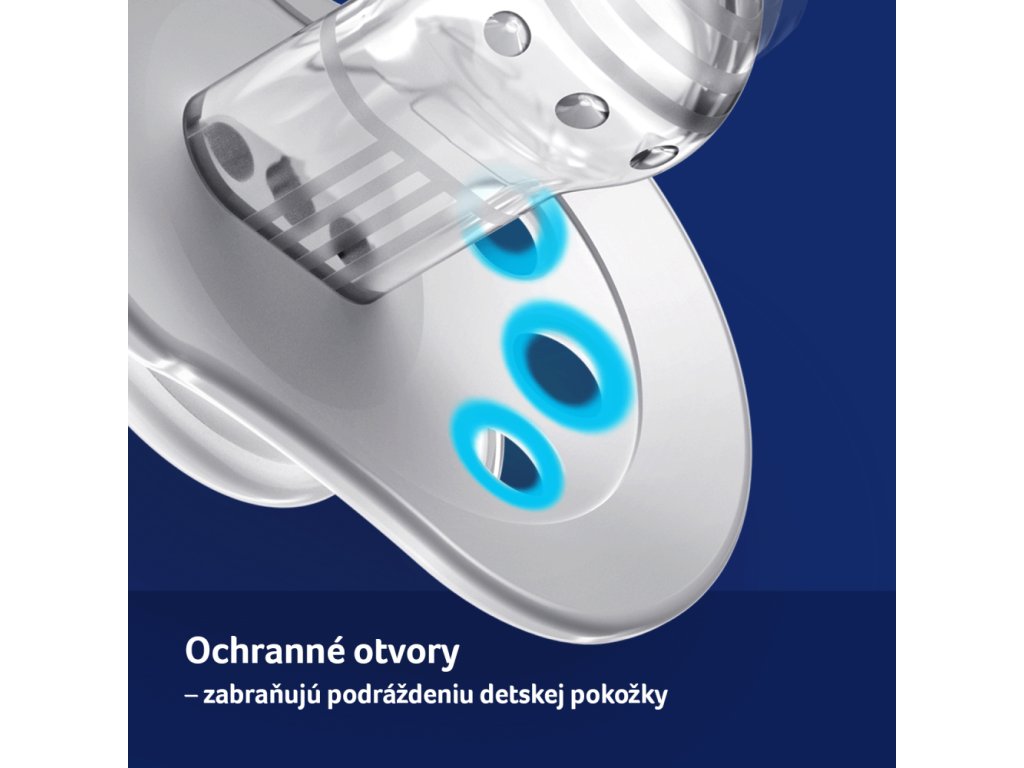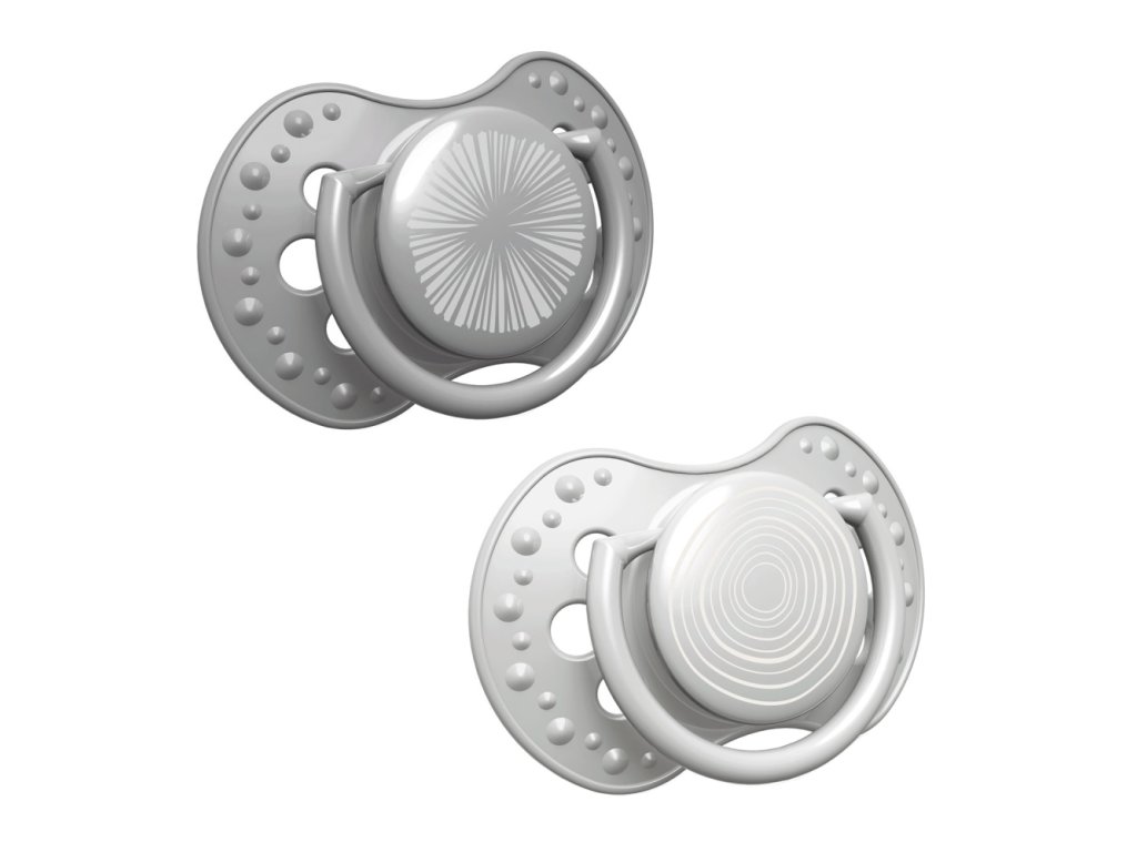 Jeho tvar umožňuje dieťaťu ľahko dýchať nosom; sú použité bezpečné materiálu bez bisfenolu A.