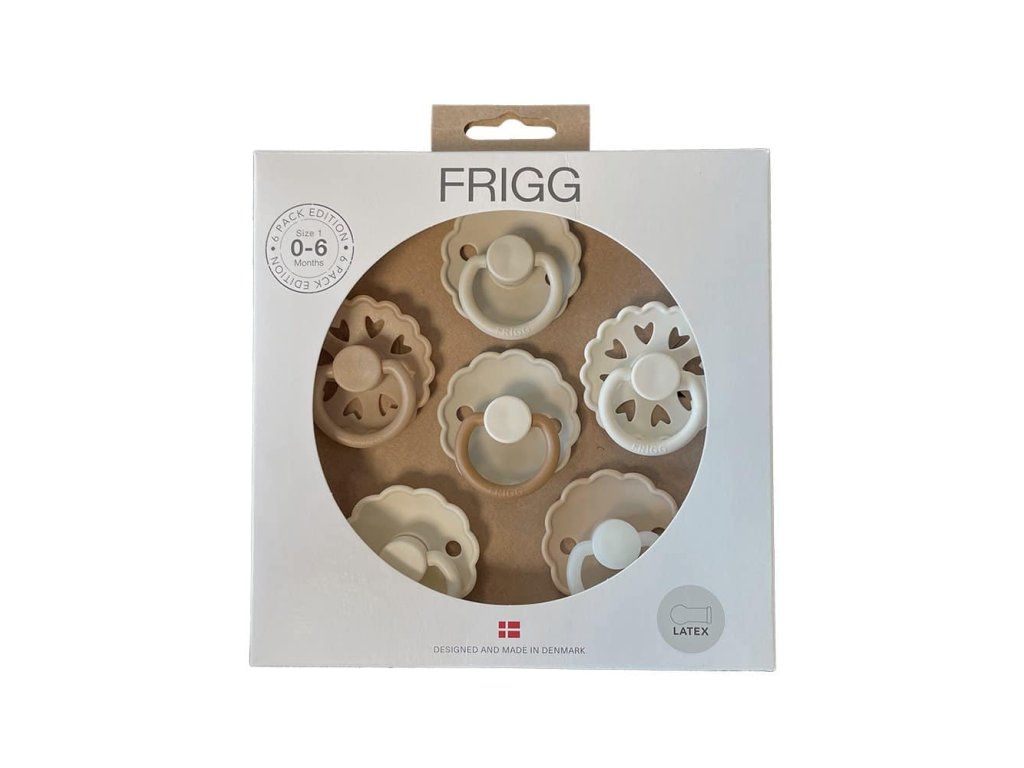 Všetky cumlíky v 6-baleniach FRIGG sú cumlíky s okrúhlym tvarom cumlíka. Okrúhly cumlík tvarom aj materiálom pripomína materinský prsník. Vysvetlením je, že keď sa dieťa chystá dojčiť, jazyk sa zroluje okolo bradavky a vytvorí podtlak, ktorý spôsobí tok mlieka. Keď dieťa saje okrúhly cumlík, gúľa okolo neho jazyk rovnako. Okrúhly tvar odporúčajú detskí chiropraktici a pôrodnice v Dánsku. FRIGG predstavuje „Cinnamon Charm“ 6-balenie: Šesťbalenie „Cinnamon Charm“ od FRIGG, balenie pozostávajúce zo 6 okrúhlych cumlíkov v teplých farbách, ktoré dokonale ladia s paletou prírody. Vyberte si „Cinnamon Charm“ pre útulnú eleganciu a nadčasový šarm. Jedným z cumlíkov je cumlík FRIGG Night, má funkciu svietenia v tme. Rukoväť a gombík budú svietiť v tme a vyriešia problém nájsť a umiestniť cumlík vášho dieťaťa uprostred noci. Funkcia nočného žiarenia je jemne jasná a nepoškodí oči vášho dieťaťa a cumlík môžete ľahko nájsť bez zapnutia svetla. Podržte cumlík vo svetle, aby ste aktivovali funkciu žiary. FRIGG 6-balenie Cinnamon Charm obsahuje:- 1ks FRIGG Fairytale okrúhly cumlík vo farbe: The Emperors New Clothes (Silky Satin)