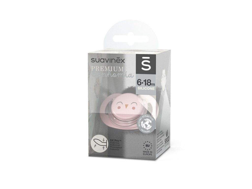 SUAVINEX | Cumlík anatomický BONHOMIA 6/18 m SOVIČKA - ružová