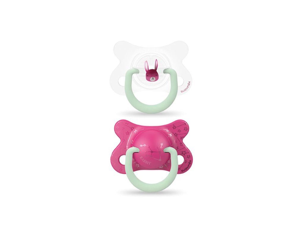 SUAVINEX | Cumlík DEŇ&NOC fyziologické silikón -2-4m 2ks - ružový králik