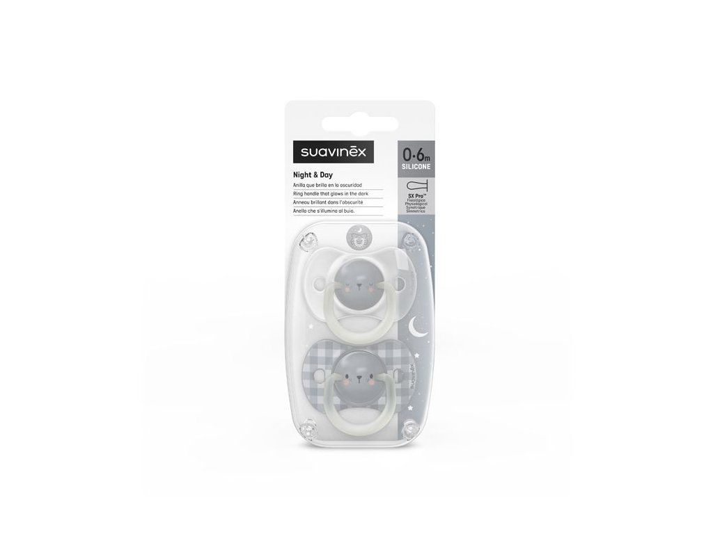 SUAVINEX | Cumlík DEŇ&NOC fyziologický silikón 0-6 m 2ks - modrý medveď