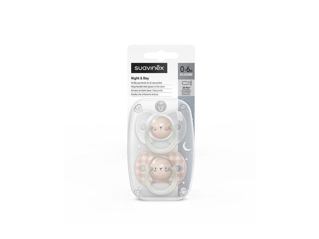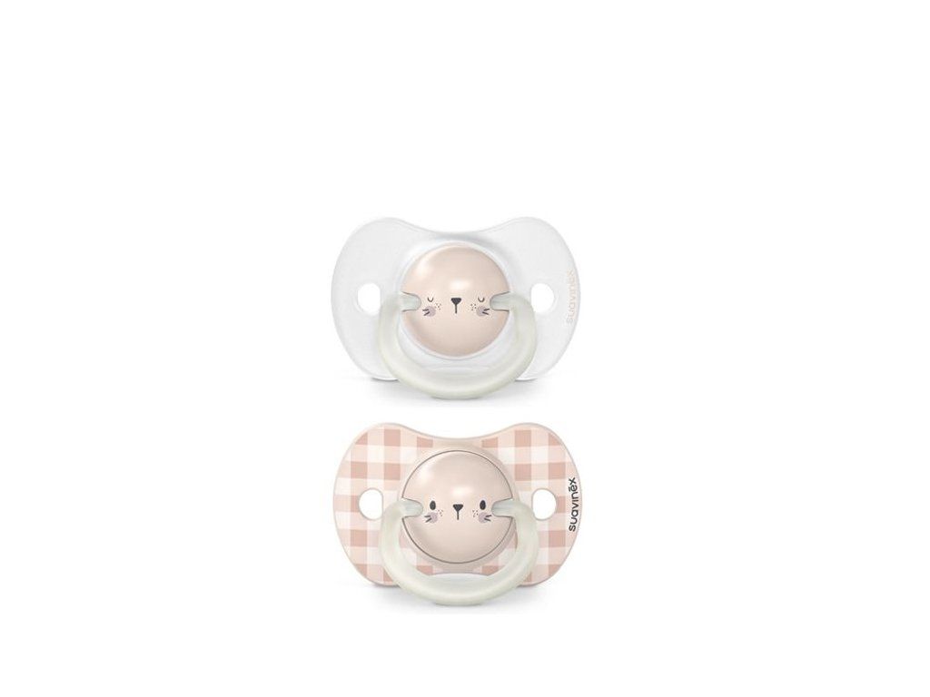 SUAVINEX | Cumlík DEN&NOC fyziologický silikón 0-6 m 2ks - ružový králik