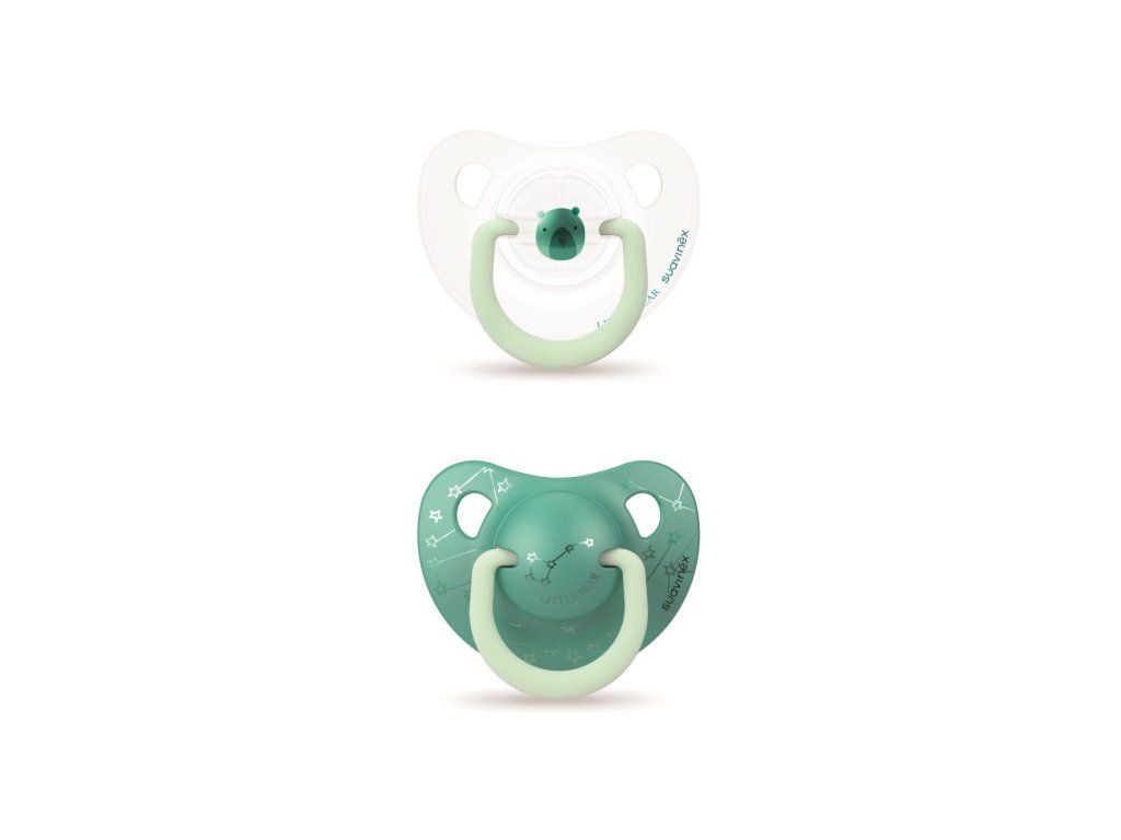 SUAVINEX | Cumlík DEŇ&NOC anatomické silikón 0-6 m - zelený medveď