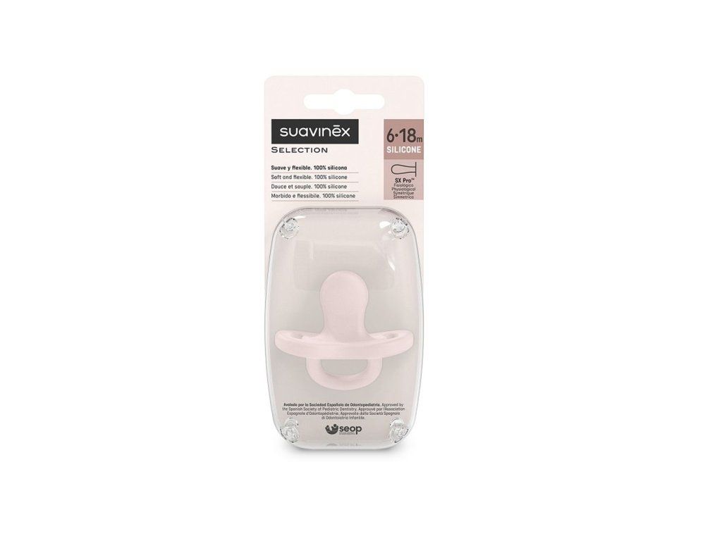 SUAVINEX | CUMLÍK fyziologický SILIKON 6-18m SX PRO - COLOUR ESSENCE - ružové