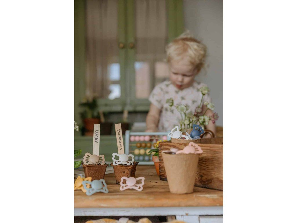 FRIGG Lucky je symetrický cumlík s mierne splošteným cumlíkom v tvare slzy. Symetrický cumlík vždy správne sedí v ústach dieťaťa, bez ohľadu na to, či je otočený nahor alebo dole. Cumlík je navrhnutý s plochejším krkom, aby sa znížil tlak na podnebie, ďasná a tiež znížilo riziko krivých zubov a krivého zhryzu. Ortodontický dizajn je ideálny pre podporu správneho vývoja detských zubov, čeľuste a podnebia. Každý cumlík je strojovo testovaný na závadnosť, aby sa k našim najdôležitejším zákazníkom dostal vždy perfektný produkt. FRIGG Lucky je inšpirovaný štvorlístkom. Štít má zvlnené okraje, ktoré sú v tvare listov štvorlístka a tieto listy fungujú ako vzduchové otvory. Okrúhly stred zvýrazňuje eleganciu cumlíka. Štvorlístok je všeobecne uznávaným symbolom šťastia kvôli svojej vzácnosti. FRIGG Lucky je vyrobený tak, aby poskytoval deťom upokojujúce pocity a prinášal im šťastie. Tento cumlík je kúzlom pre šťastie, ktoré rozjasní život každého dieťaťa. Nový Click-lock™ systém odlišuje cumlík FRIGG od akéhokoľvek iného cumlíku na trhu. Vďaka novému 4-krokovému procesu spájania jednotlivých častí cumlíka je možné cumlík zostaviť jednoduchým kliknutím, bez použitia akejkoľvek sily. Vďaka tomu je cumlík ešte odolnejší ako predtým. FRIGG je 100% dizajnovaný a vyrobený v Dánsku ako jediná značka cumlíkov na svete! Každý cumlík je zároveň vyrobený na princípe zero-waste, čím sa minimalizuje odpad materiálu vďaka možnosti recyklácie. Cumlíky sú vyrábané s maximálny ohľadom na životné prostredie, a zároveň s dôrazom na uspokojenie potrieb najmenších detí. FRIGG kladie dôraz aj na bezpečnosť - cumlíky sú vyrábané bez BPA, PVC a ftalátov, každý cumlík podstupuje stretch a vacuum test pred uvedením do predaja a sú vyrábané podľa najprísnejšej normy EN1400-A2. Detaily cumlíka FRIGG Lucky- 100% navrhnuté v Dánsku