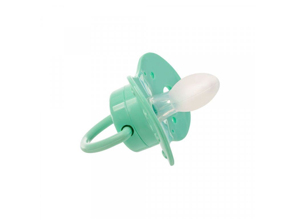 Cumlík vyrobený zo silikónu prvotriednej kvality, bez zápachu a chuti. Je vybavený symetrickým elastickým pásikom. Zabezpečuje voľné dýchanie a prehĺtanie slín. Cumlík je dobre odvetraný vďaka špeciálnym vetracím otvorom.