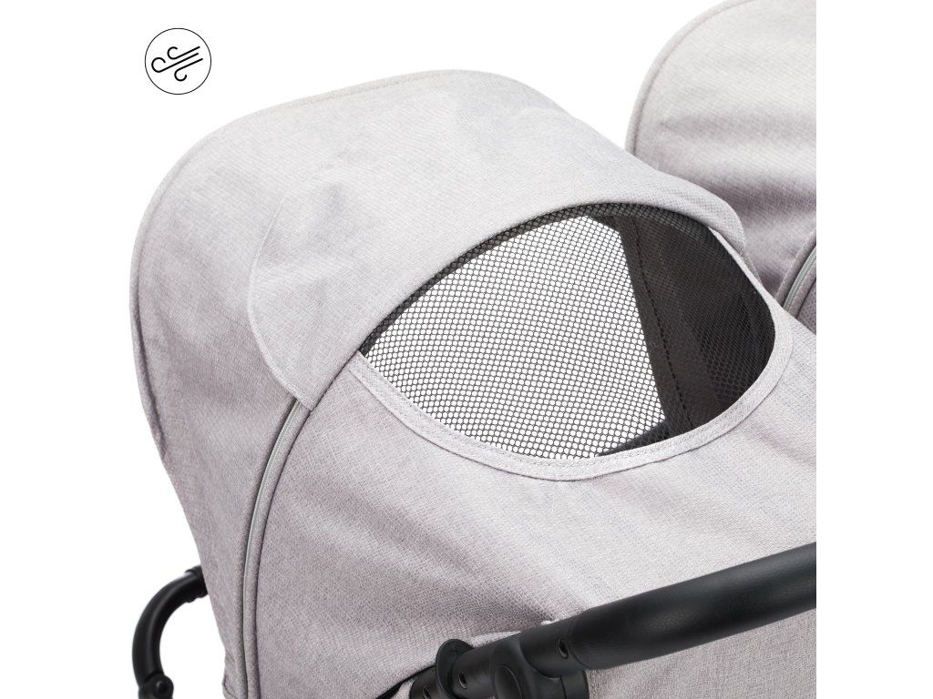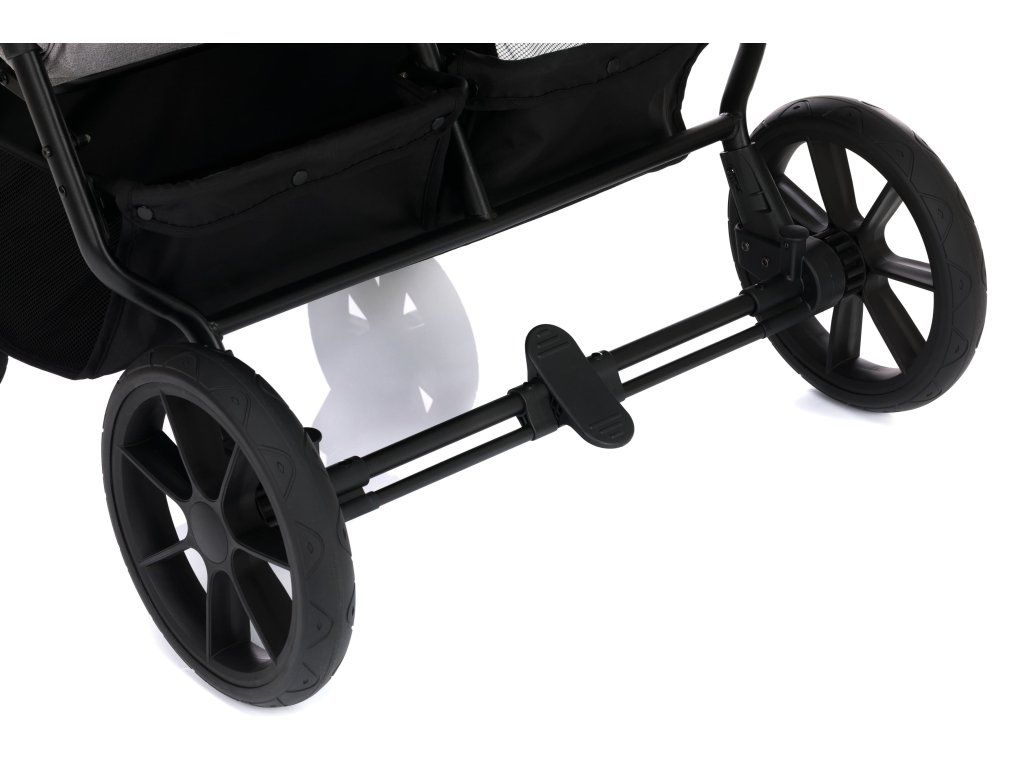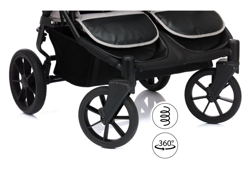 Tento kočík je perfektným riešením pre rodičov dvojčiat, ktorí hľadajú kvalitný a zároveň cenovo dostupný kočík. Vďaka pevnej konštrukcii, prvotriednym materiálom a veľkej variabilite ponúka všetko, čo moderní rodičia potrebujú. Tento všestranný kočík môžete používať ako kočík pre dvojčatá, súrodencov alebo s voliteľnými korbičkami ako kombinovaný kočík. teréne. Robustné polyuretánové kolesá zvládnu akýkoľvek povrch a robia z kočíka spoľahlivého spoločníka na každom výlete. So šírkou iba 75 cm prejde kočík ľahko štandardnými dverami, čo je ideálne do mestského prostredia alebo úzkych priestorov. Dve samostatne nastaviteľné operadlá ponúkajú individuálny komfort pre každé dieťa a rozšíriteľné striešky spoľahlivo chránia pred slnkom i vetrom. Aretovacie predné kolieska uľahčujú ovládanie a zaisťujú stabilitu pri jazde.