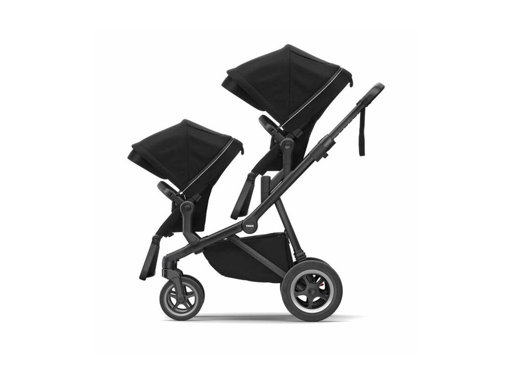 Pohodlná a priestranná sedačka, ktorá mení váš kočík Thule Sleek na kočík pre dve deti.