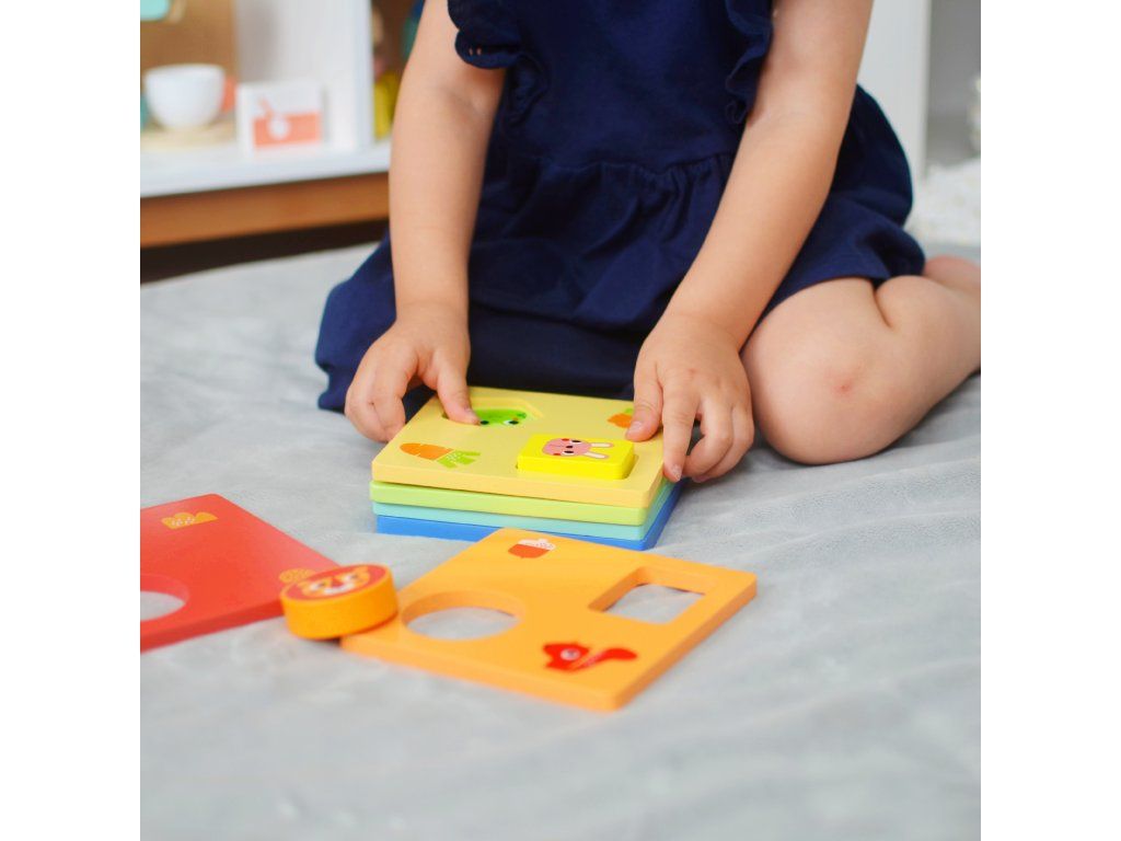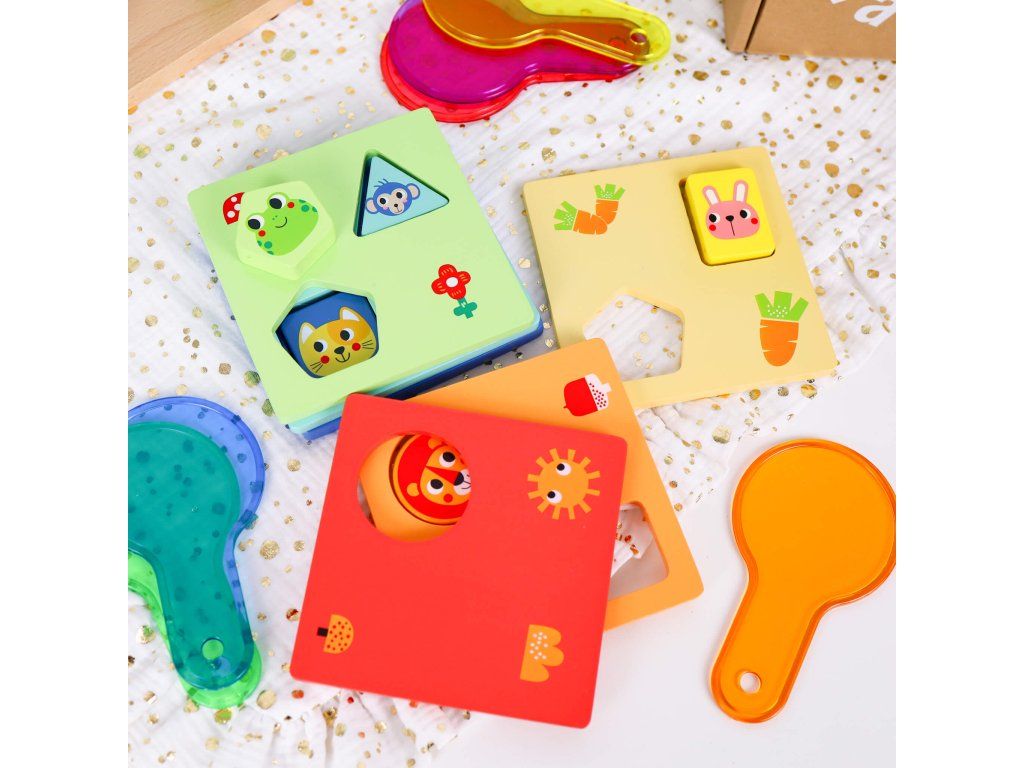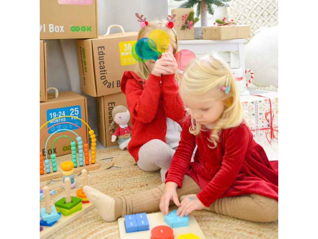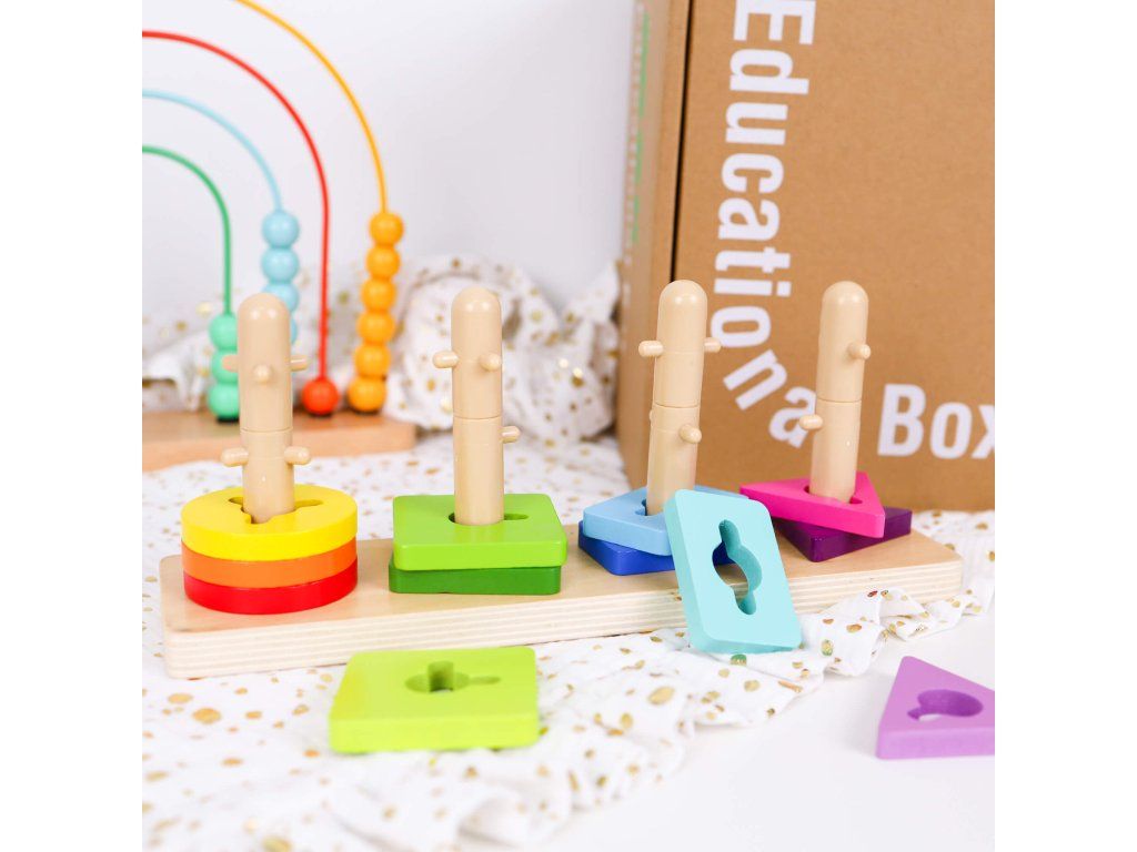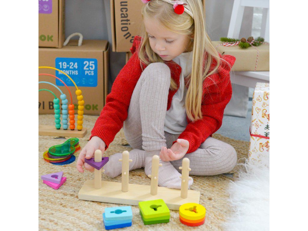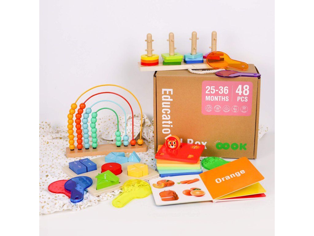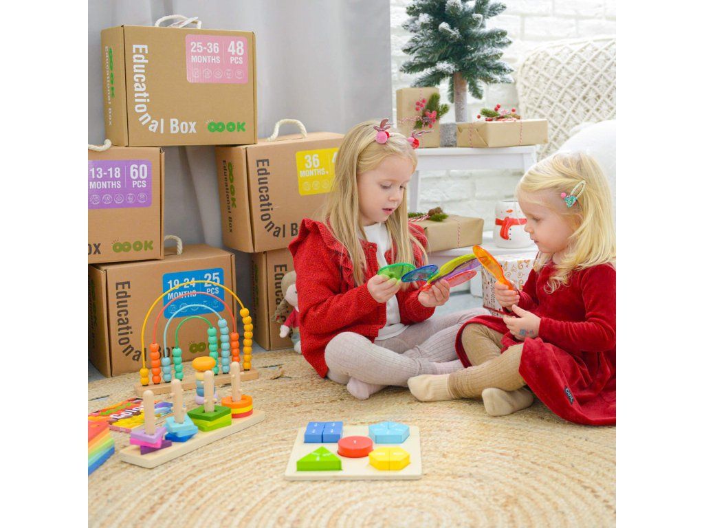 25–36 mesiacov Edukačný box 6 ks 6 didaktických hračiek od 2 rokov v jednom balení Edukačný box od Tooky Toy je určený pre batoľatá približne od 2 do 3 rokov. Obsahuje 6 montessori didaktických hračiek od 2 rokov, ktoré podporujú zdravý psychomotorický rozvoj vášho dieťaťa, rozvíja jeho logické myslenie, zmyslové vnímanie, koordináciu ruka-oko, jemnú motoriku a ďalšie. Nechýba ani podrobná príručka pre rodičov, vďaka ktorej budete vedieť, kedy akú hračku dieťaťu predstaviť a ako sa s ňou hrať.Box obsahuje:drevené triedenie a nasadzovanie tvarov,6 farebných sklíčok,logickú hru Tvary,vkladacie puzzle Zlomky,leporelo Farby,počítadlo Dúha,návod na použitie v angličtine.Bezpečné vzdelávacie hračky pre najmenších Vďaka Edukačnému boxu nebudete kupovať zbytočne veľa nevhodných či plastových hračiek. Didaktické hračky Tooky Toy sú vyrábané s ohľadom na životné prostredie z dreva z udržateľného lesníctva a ďalších bezpečných materiálov. Farby sú netoxické a úplne bezpečné. Až dieťatko vyrastie, postúpi k ďalšiemu Edukačnému boxu +36 mesiacov a tento môžete nechať pre mladších súrodencov alebo venovať niekomu inému. Edukačný box Tooky Toy je vhodný ako darček pre deti.Dodatočné parametre