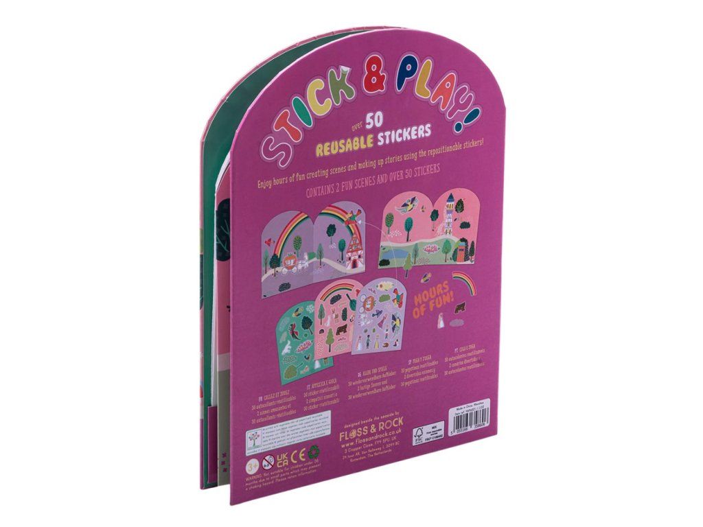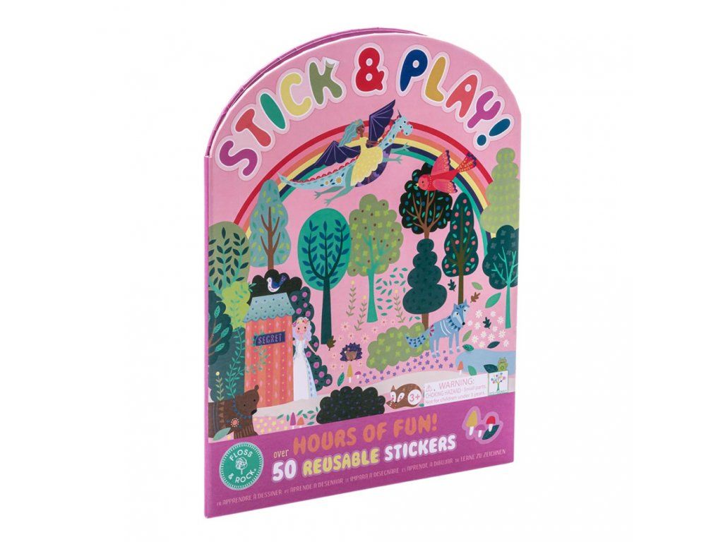 Zošit s nálepkami Floss&Rock Stick & Play je zábavná a zároveň náučná. S viac ako 50timi tvarovanými opakovane použiteľnými nálepkami. K dispozícii sú 2 rozkladacie scény na vytváranie a vymýšľanie príbehov pomocou nálepiek. Na zadnej strane je oddelená časť, kde priraďujete nálepky k ich tvaru. Toto zabaví najmenších na celé hodiny! Pevná zadná časť knihy sa dá zložiť úplne naplocho, vďaka čomu je ideálna na cestovanie.Obsahuje: 50x opakovane použiteľných nálepiek, 2x scéna, 1xzošit