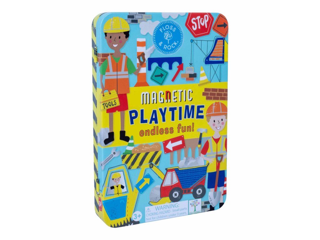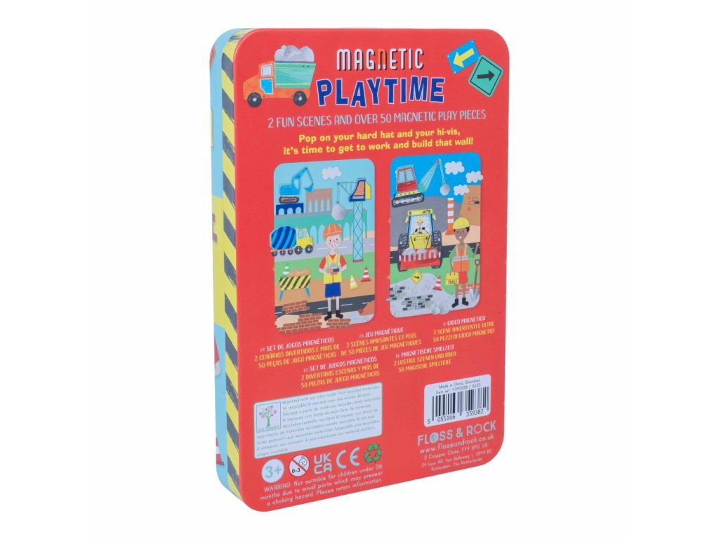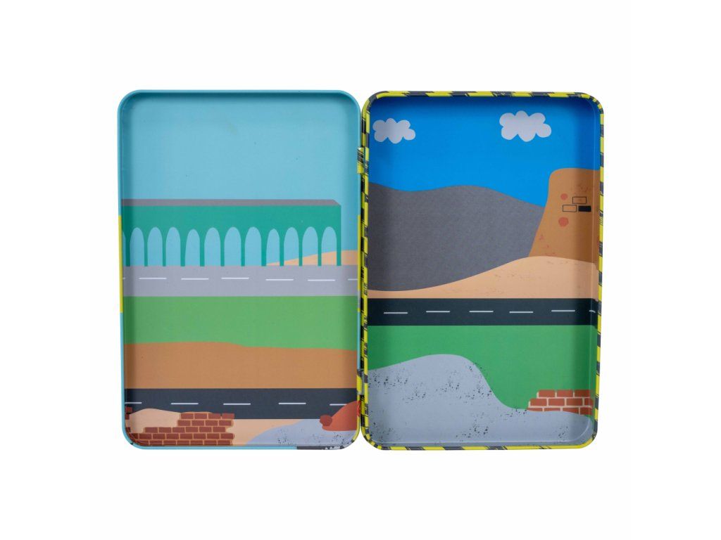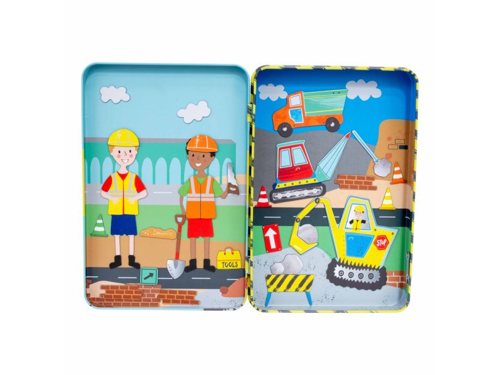 Zábava pri hraní v praktickej magnetickej plechovke! Obsahuje 3 listy s magnetkami, takže sa môžete zabaviť prilepením viac ako 50tich zábavných magnetických dielikov k 2 zábavným scénam na vnútornej strane plechovky a popustite uzdu svojej fantázii pri vytváraní obrázkov so staviteľmi, bagristami, nákladnými autami a oveľa viac. Perfektný darček na cestovanie, potlačený sójovým atramentom a vyrobený z recyklovaných materiálov. Keď skončíte s hraním, magnetky uložíte do uzatvárateľnej plechovky a všetky vaše figúrky ľahko nájdete.VLASTNOSTI: Ideálne na cesty, viac ako 50 magnetických doplnkov. 2 zábavné scénky.