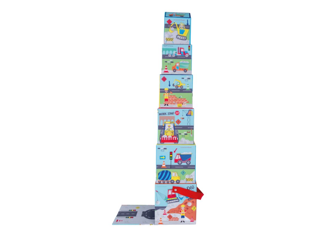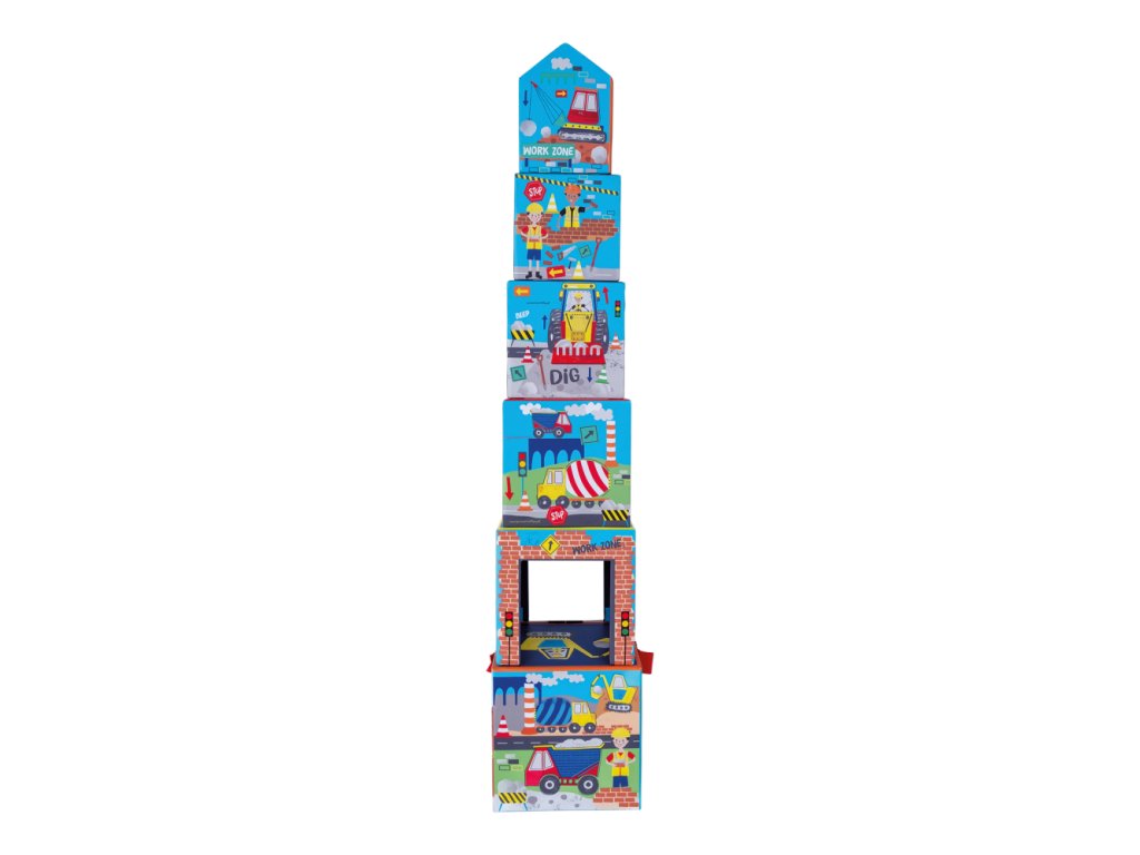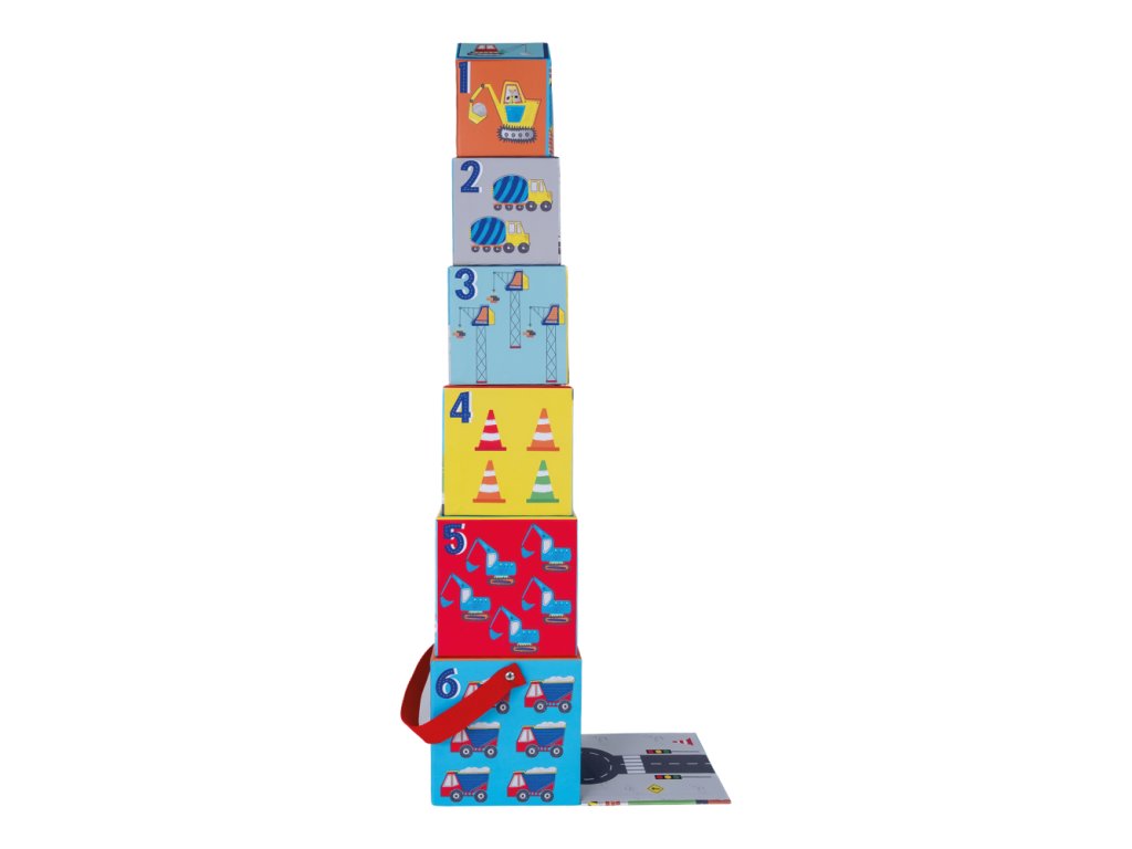 Obsahuje 3 drevené dieliky a 6 stohovacích kociek.