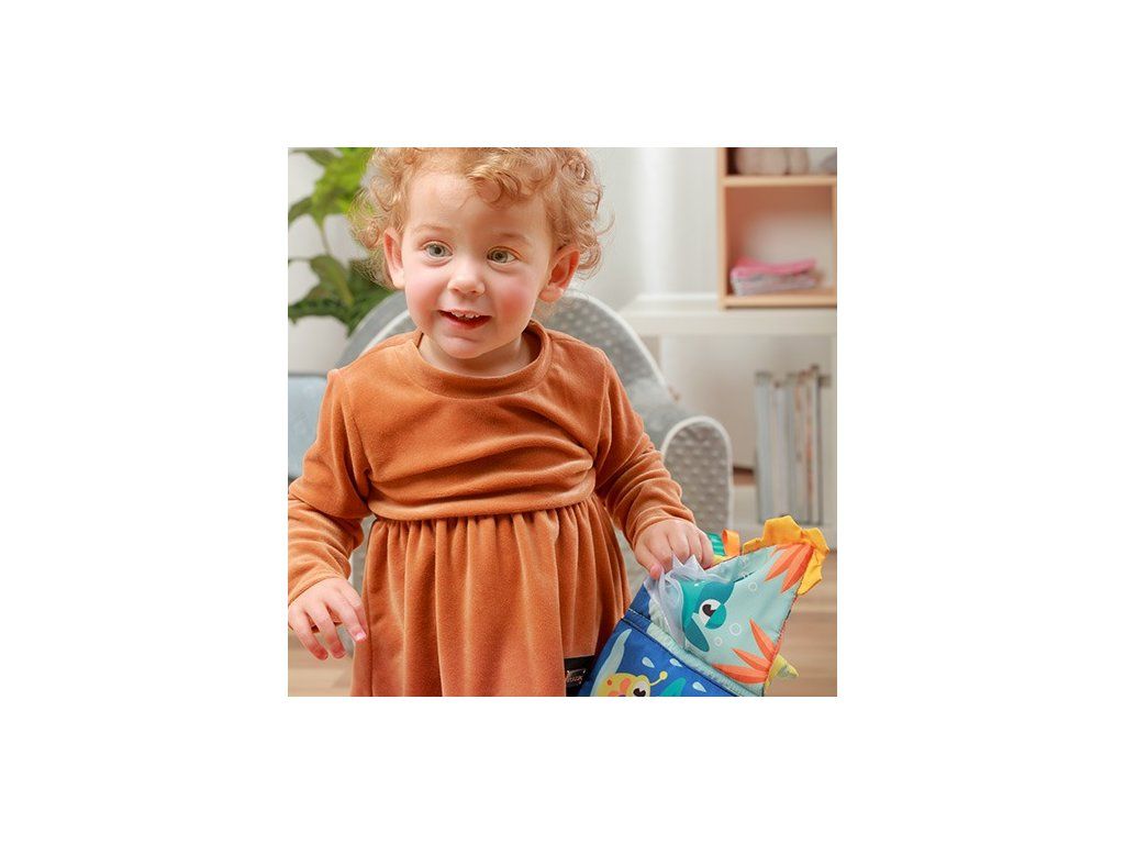 Knižka je vyrobená z materiálov rôznych textúr a farieb. Je nevyhnutná pre rast zmyslov Vášho drobca. Hračka tiež podporuje zrakovú, sluchovú a motorickú koordináciu.