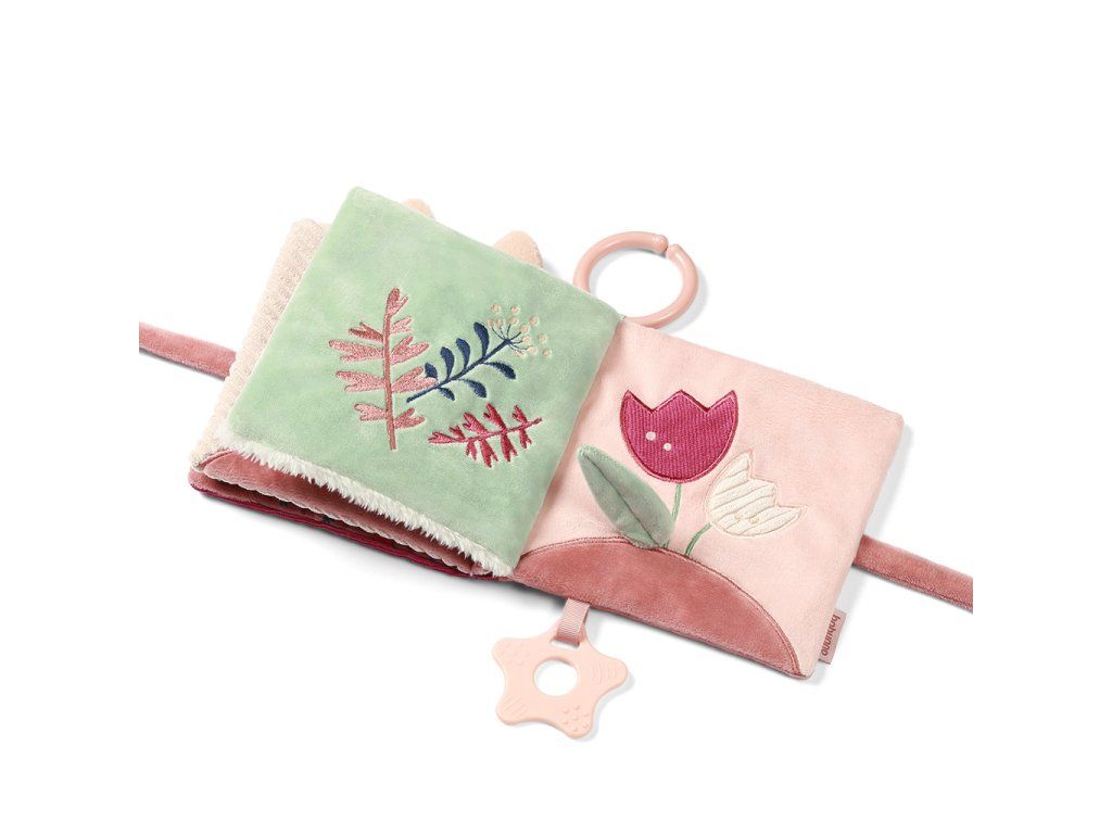 Zaujímavé textúry, rôzne farby a tvary stimulujú fantáziu. Látková kniha má C-krúžok - môžete ju zavesiť na postieľku, kočík alebo autosedačku.