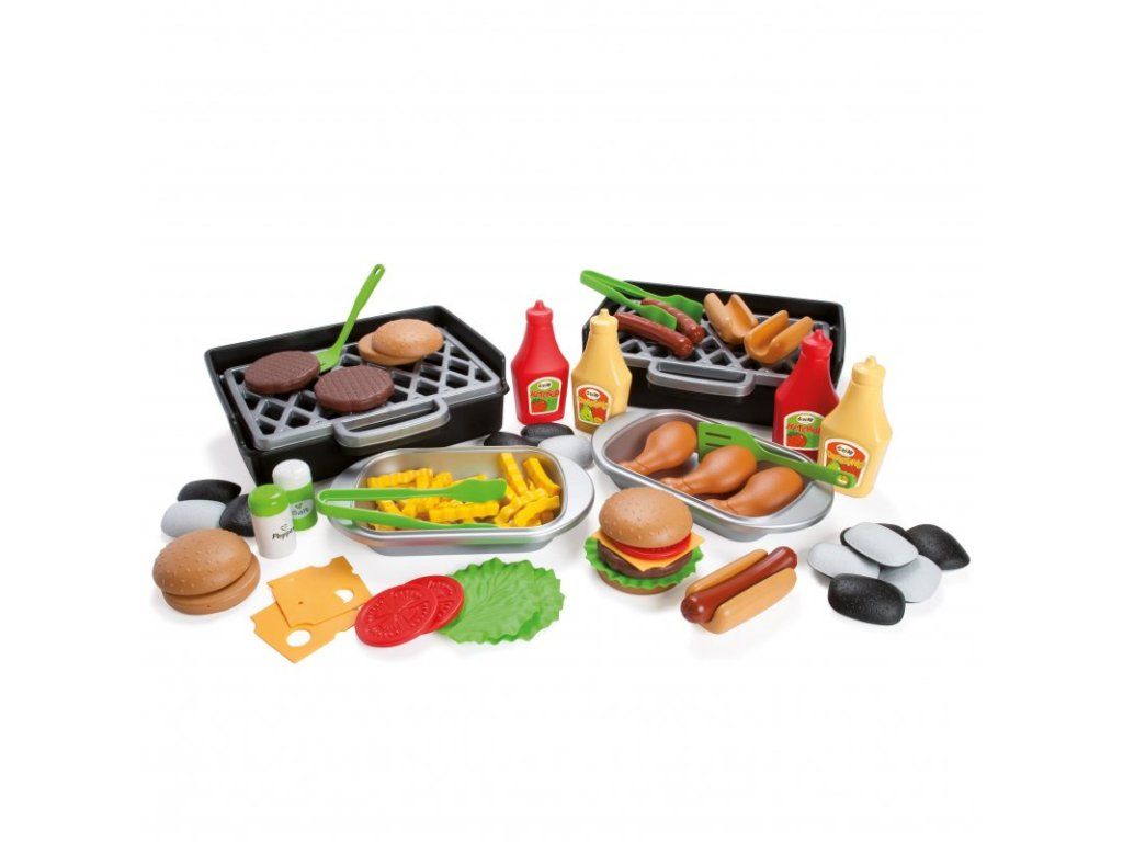 - pestrofarebná veľká plastová sada riadu + jedla + 2 grilov
