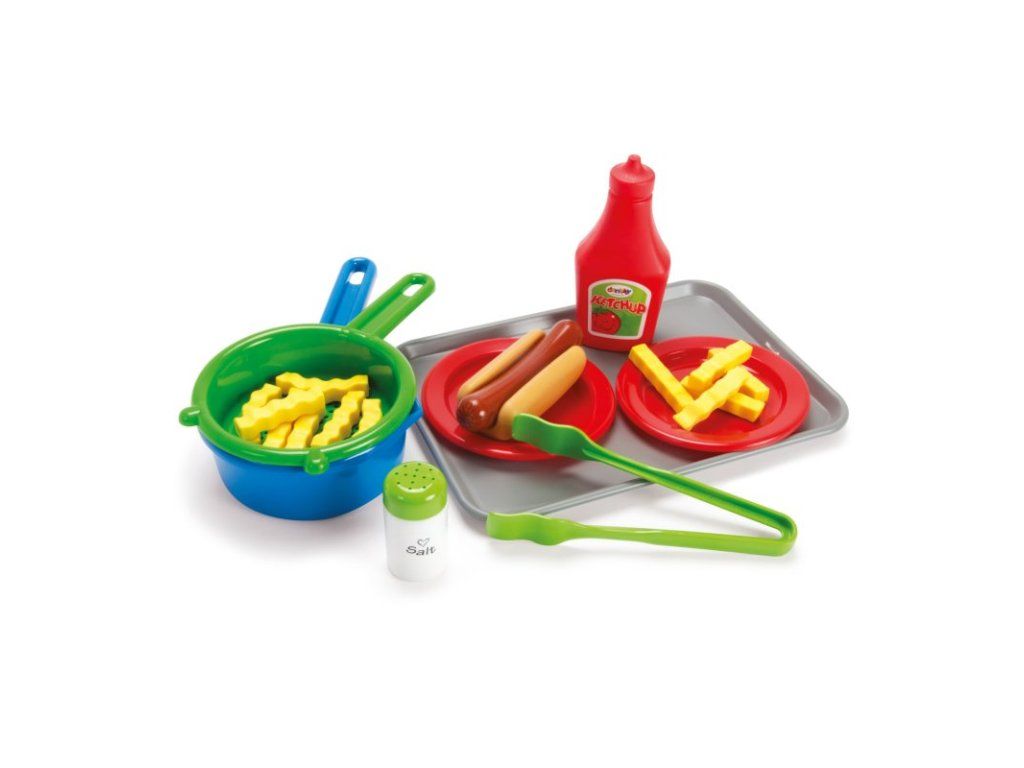 - pestrofarebná plastová sada riadu + hotdog s táckou