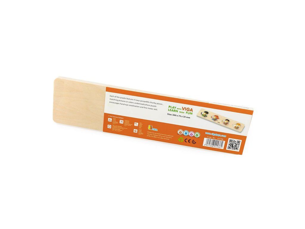 Krásne, farebné detské drevené puzzle s úchytmi Viga. Deťom sa vďaka úchytom puzzle lepšie držia v prstoch a ľahšie sa pridávajú do určených miest. Tiež pomáhajú zlepšiť manuálnu zručnosť i obratnosť a zároveň učia dieťa rozpoznať tvary a farby. Prispievajú k rozvoju motoriky, zlepšuje koordináciu a pozorovacie schopnosti dieťaťa. Balenie obsahuje 4 dieliky. Určené pre deti od 12 mesiacov. Prvý puzzle pre Vaše malé deti, má veľmi výrazné farby, jednoduchý dizajn a veľké dieliky. Našou prioritou je bezpečnosť a kvalita našich výrobkov, a preto farby použité na hračkách nie sú toxické a spĺňajú bezpečnostné štandardy (EN71 a ASTM). Hračka je vhodná aj ako krásny darček pre našich najmenších. Rozmer cca: 32x3x7,5cm.