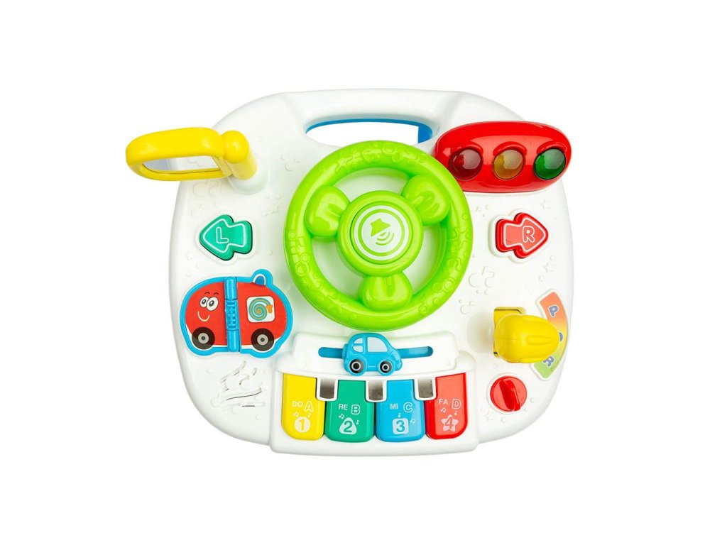 Interaktívny volant TOYZ Kids poskytne vášmu dieťaťu hodiny skvelej zábavy. Stolík je vybavený tlačidlami a svetlami, ktoré spolupracujú s reproduktorom, ktorý vydáva príjemné melódie a zvuky auta.