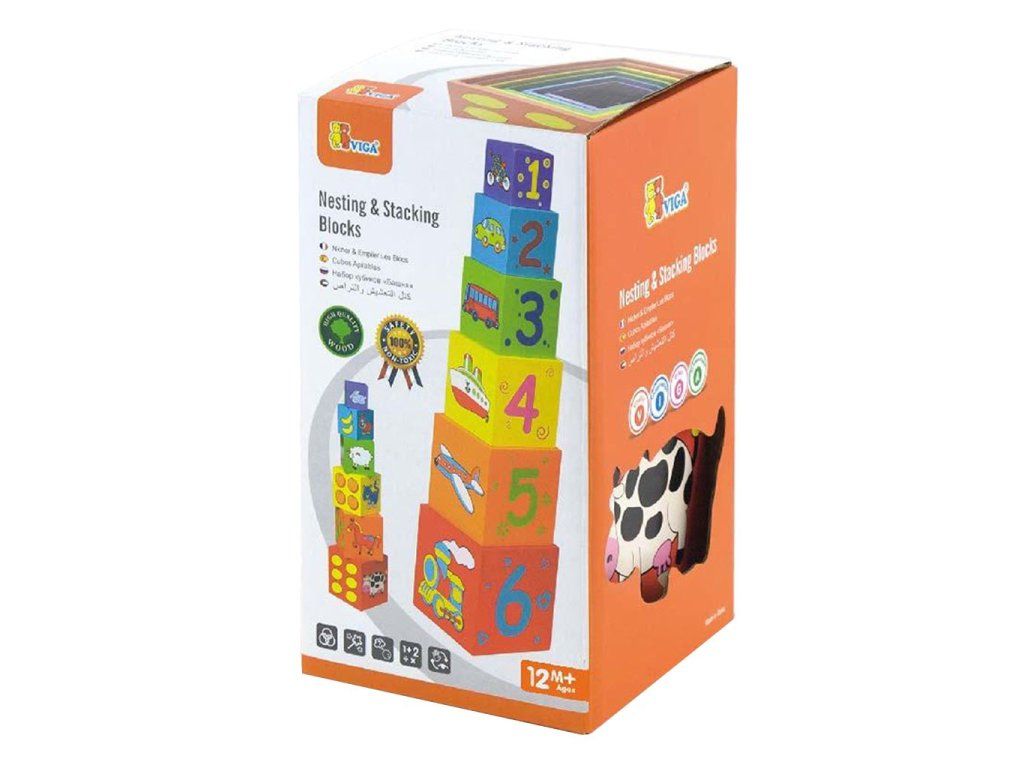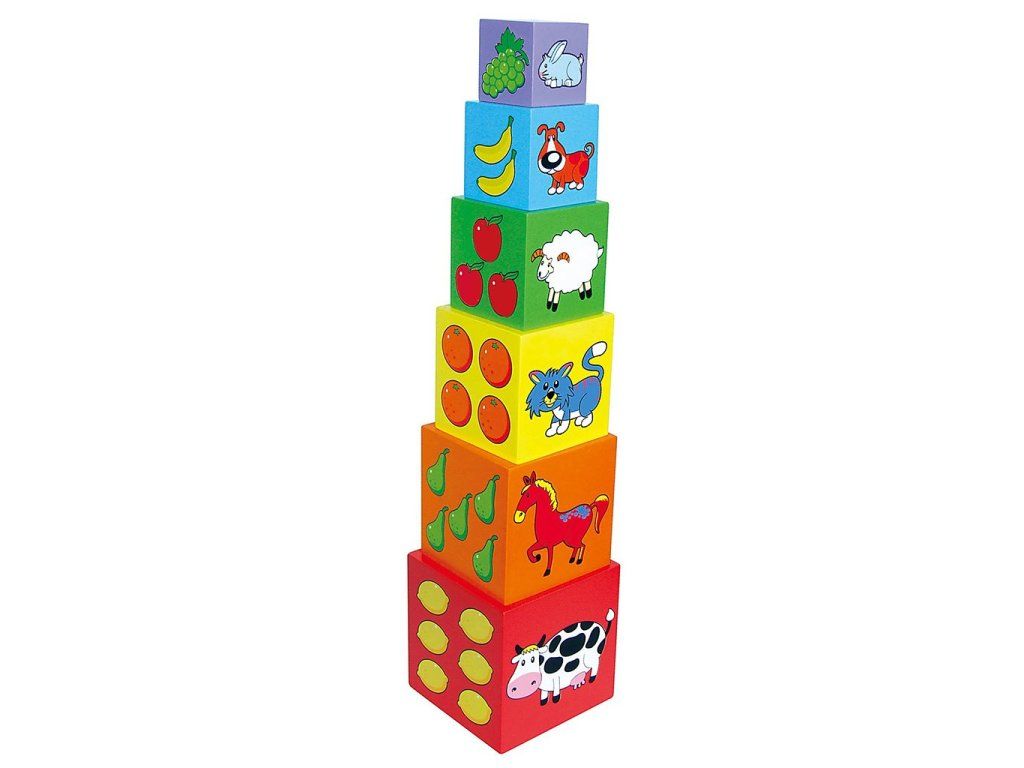Drevená edukačná pyramída Viga je jednou z najlepších hračiek, ktorá vydrží dlhú dobu a dáva vášmu dieťaťu na mnoho rokov zaujímavé a tvorivé hry. Sada obsahuje 6 kusov farebných drevených kociek v rôznych veľkostiach, ktoré sú z jednej strany otvorené a preto pekne zapadajú do seba. Kocky sú zdobené krásnymi obrázkami zvieratiek, geometrickými tvarmi, číslami, fariebami a prírodou. Kocky slúžia ako motorická pomôcka, ktorá deti učí narábať s kockami. Hračka pomáha zlepšiť manuálnu zručnosť a obratnosť, učí dieťa rozpoznať tvary a farby, zapája a rozvíja zmysel pre pozorovanie. Hračka je vyrobená z lakovaného dreva. Našou prioritou je bezpečnosť a kvalita našich výrobkov, a preto farby použité na hračkách nie sú toxické a spĺňajú bezpečnostné štandardy (EN71 a ASTM). Pre deti od 12 mesiacov. Rozmery hračky: 22x12x12 cm.Dodatočné parametre