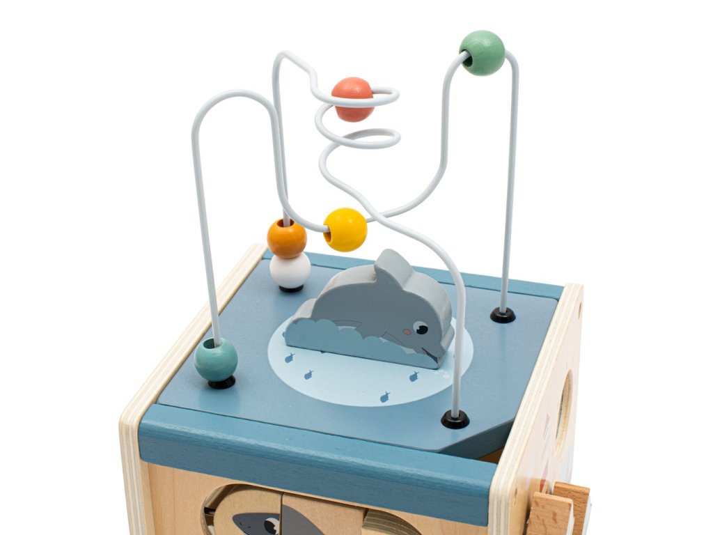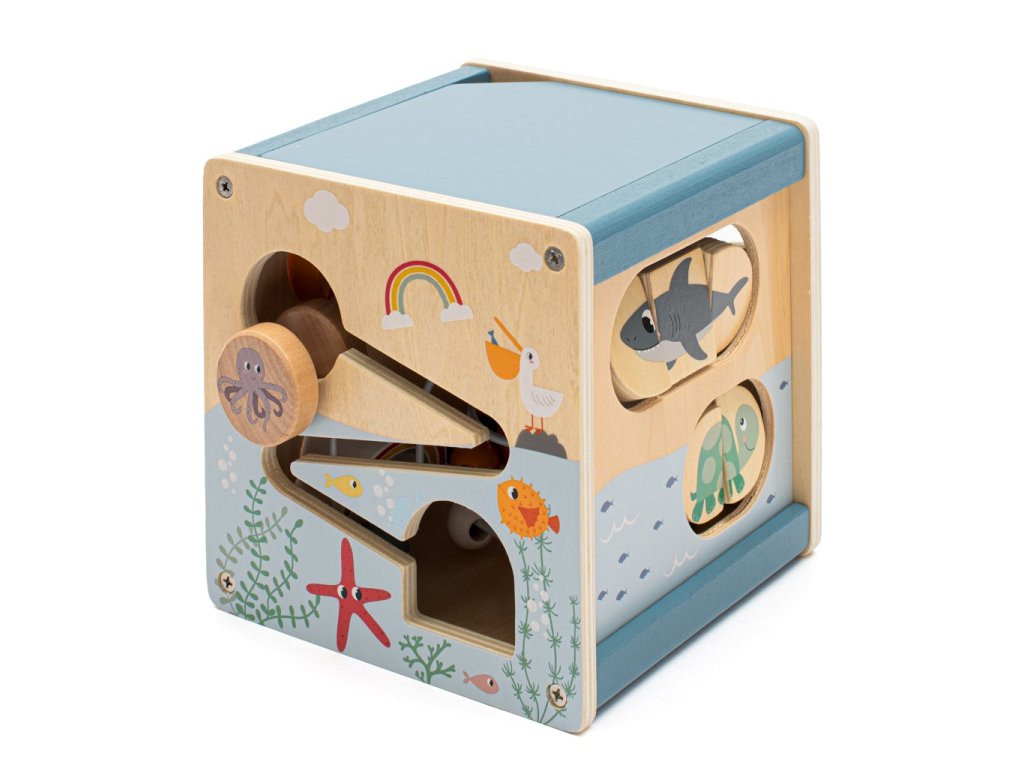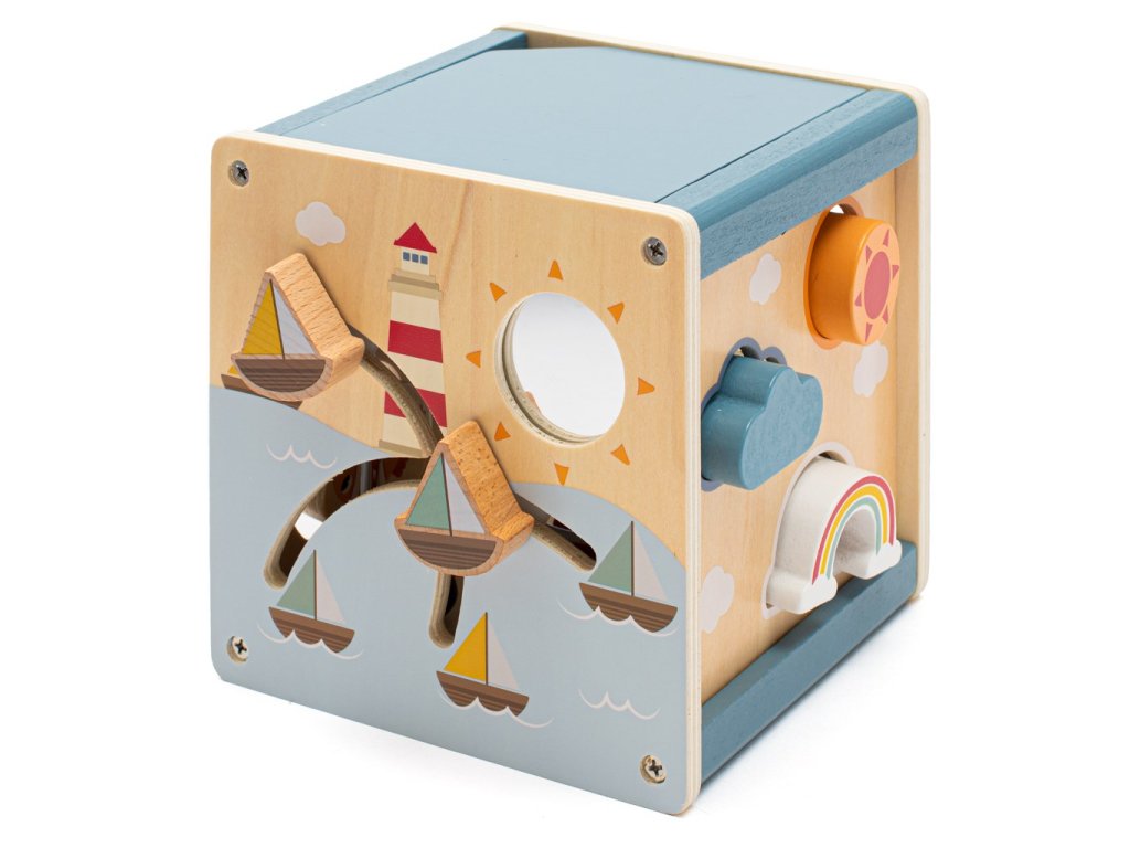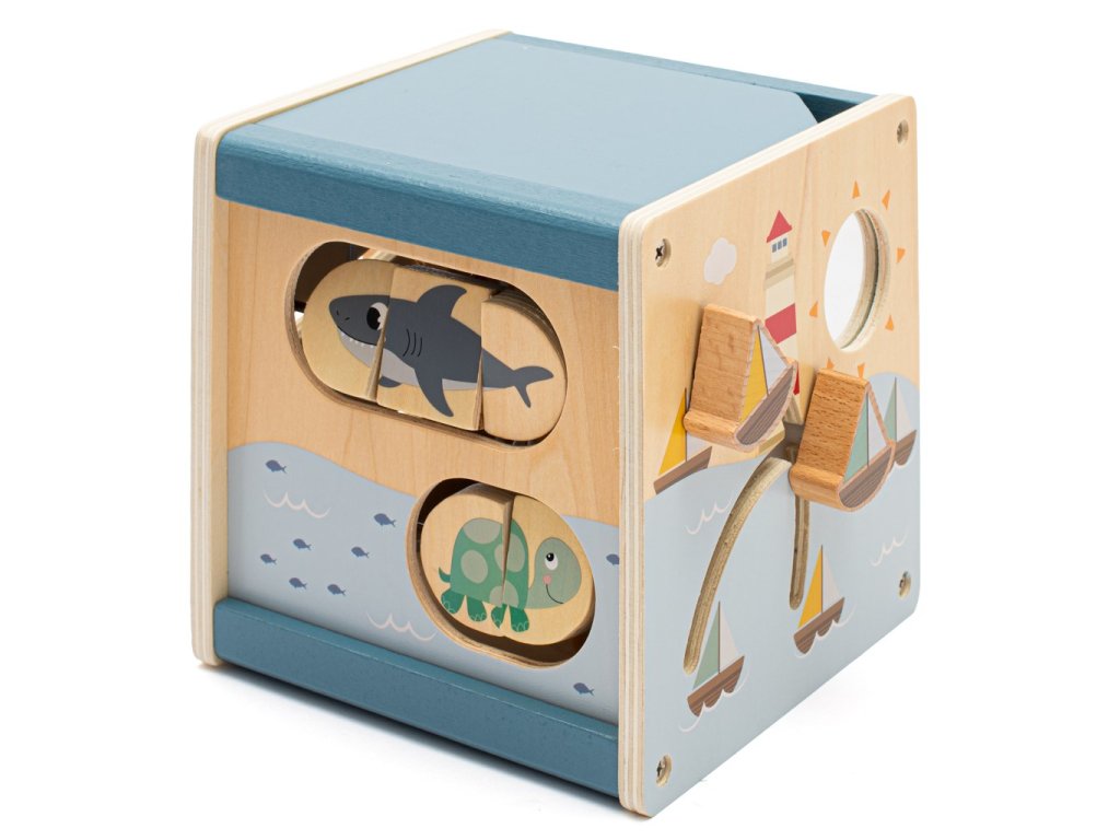 Doprajte svojmu dieťaťu zábavu plnú zmysluplného učenia s drevenou multifunkčnou kockou Ocean Montessori Baby Mix.