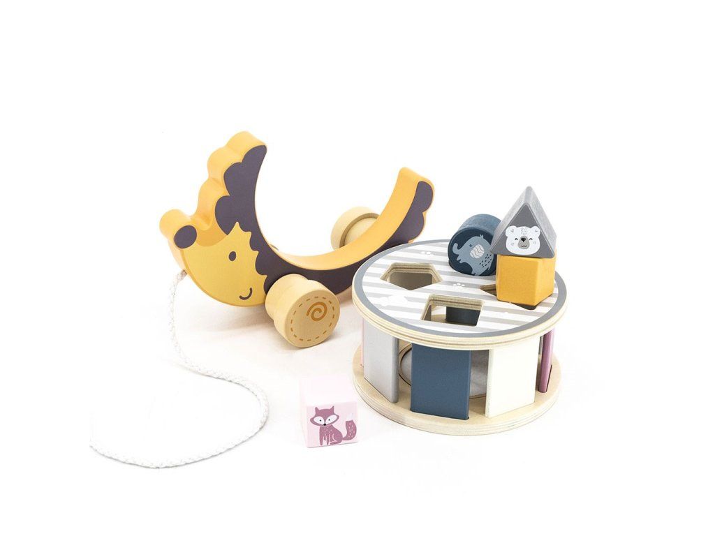 Drevená ťahacia a vkladacia hračka na šnúrke Viga Ježko - 51674