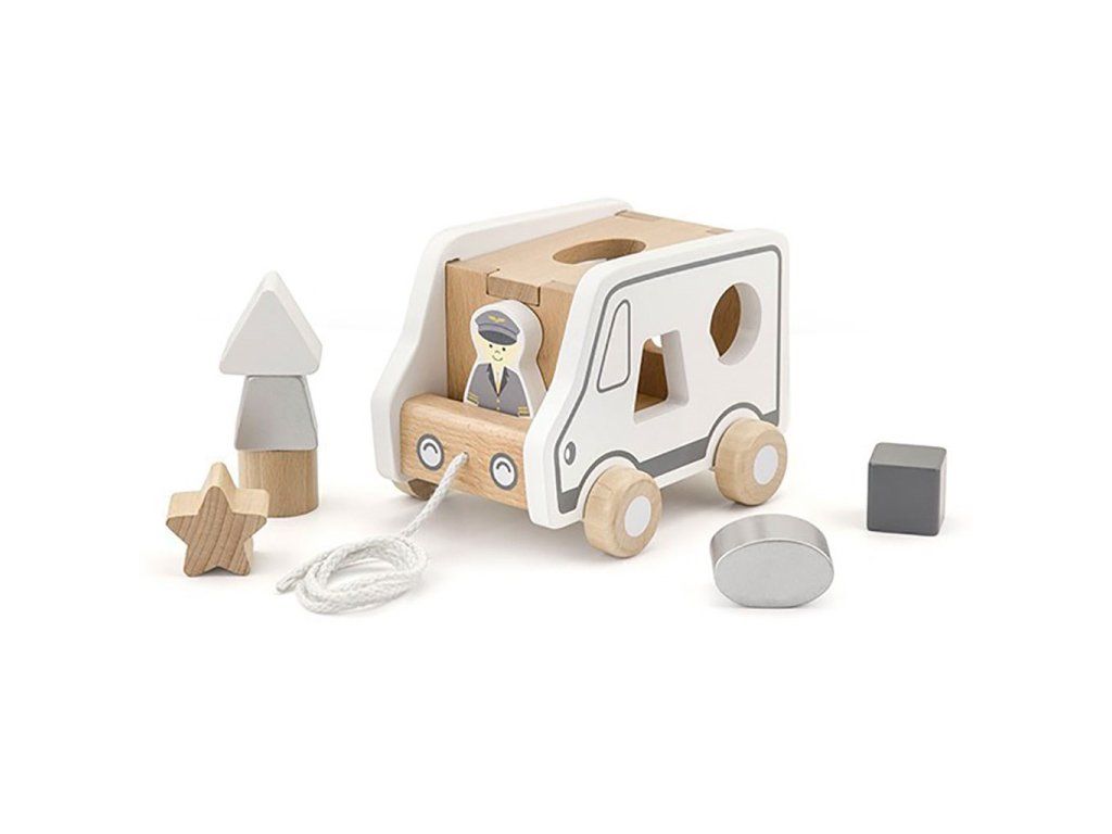 Drevená ťahacia hračka na šnúrke Viga Vkladacie auto - 51662