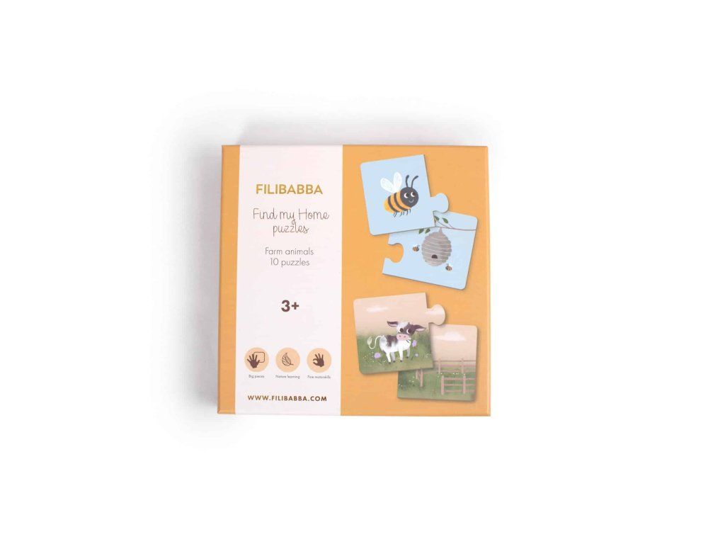 Pomôžte zvieratkám nájsť ich správny domov s touto roztomilou logickou hrou. Zlepšite jemnú motoriku a spoznajte zvieratká a ich domov zároveň. Vaša nová súprava puzzle obsahuje desať malých skladačiek s dvoma veľkými dielikmi. Vychutnajte si farebné ručne kreslené ilustrácie zobrazujúce rôzne zvieratá a ich domovy. Hádanky určite rozprúdia záujem o tému, čo slovo „domov“ skutočne znamená. Rozmer 16x8cm. Táto hra je vhodná pre batoľatá od 3 rokov a zamiluje si ju celá rodina. Hračka spĺňa normu EN71.Dodatočné parametre