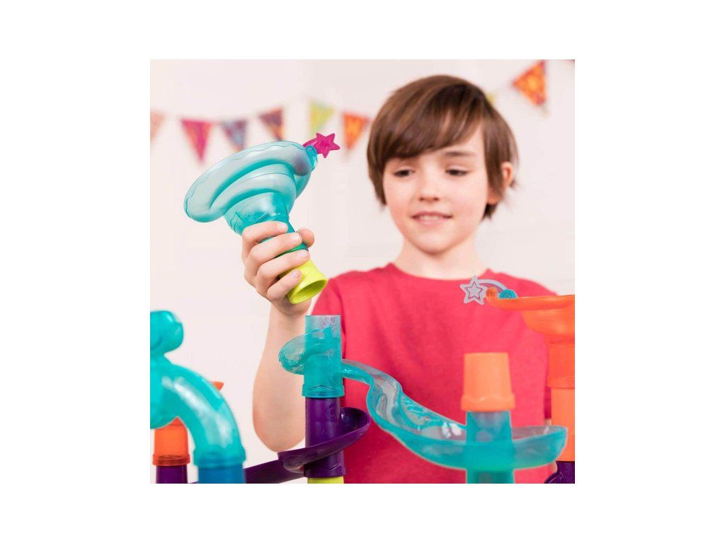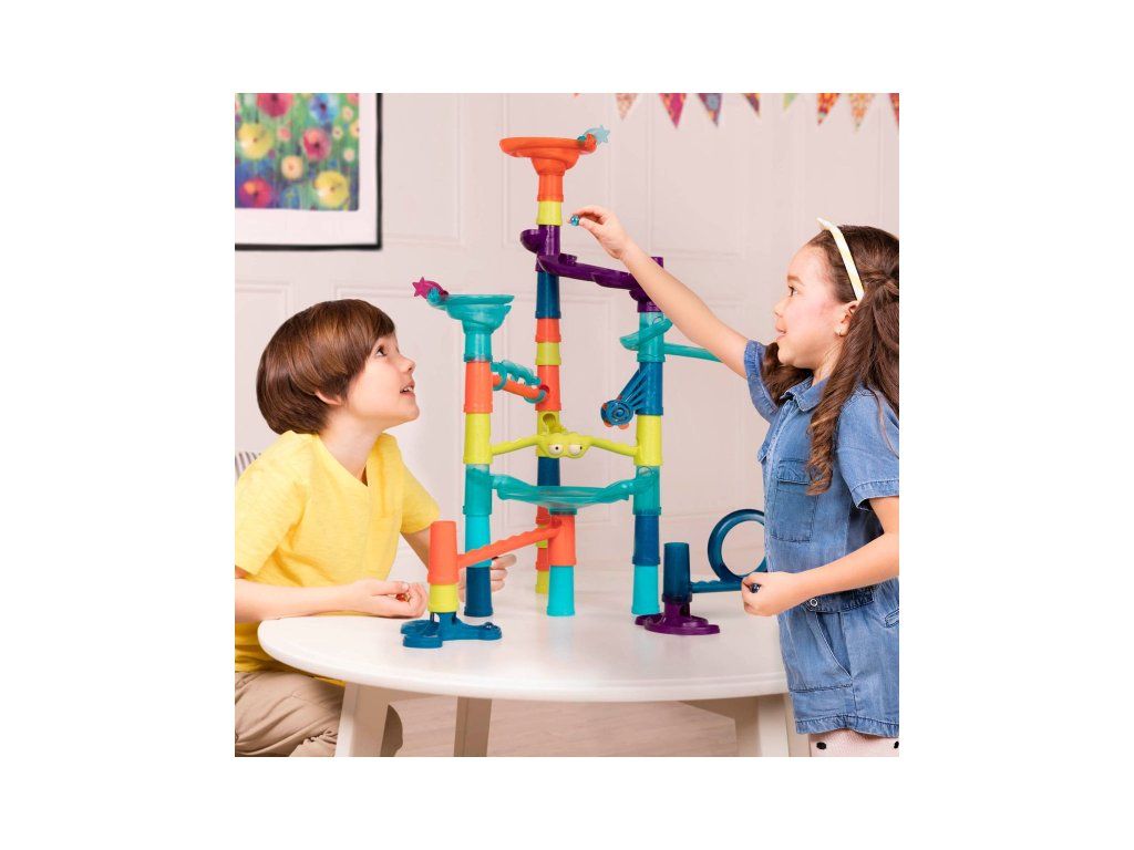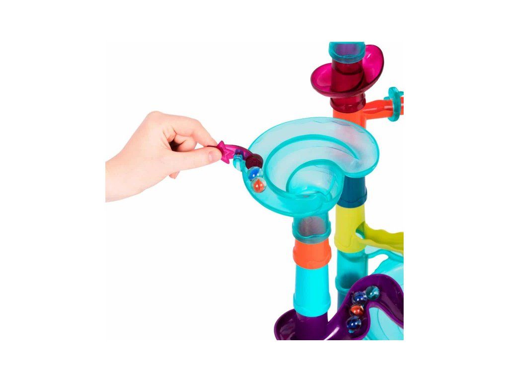Maxi guličková dráha ponúka nekonečnú variabilitu pri stavaní dráhy z farebných, odolných dielov. Postavte spolu s vašimi deťmi dráhu obsahujúcu vysoké veže, krútiace sa mosty aj rôznorodé pohyblivé časti a potom si užite sledovanie pohybu guličiek celým bludiskom.