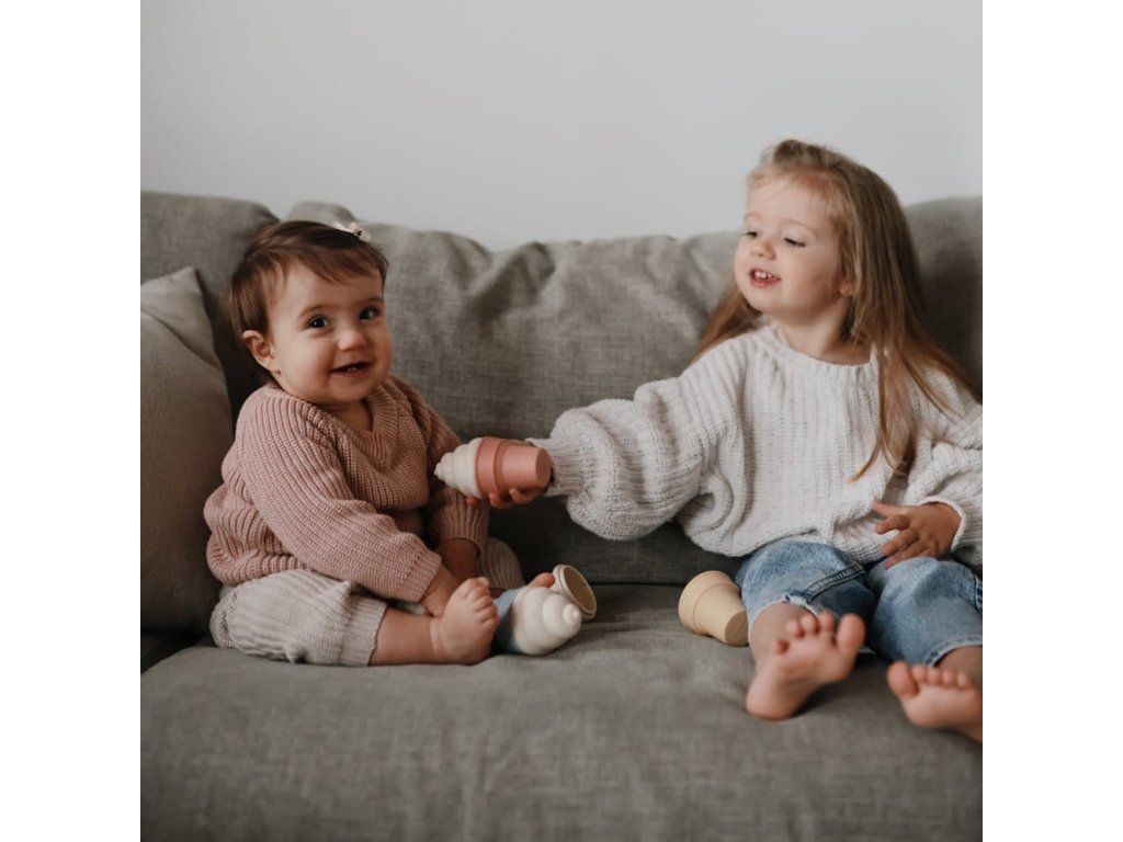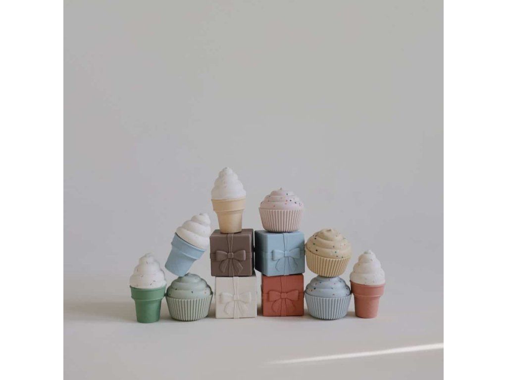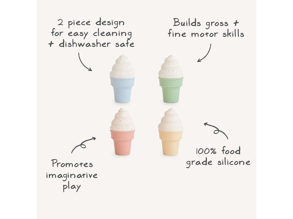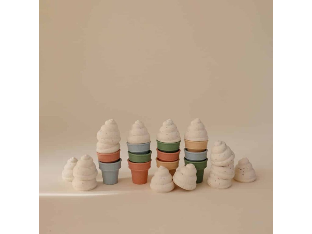 Rozvíjajte kreativitu a jemnú motoriku s roztomilou hračkou Mushie Mix & Match Ice Cream, ktorá vnesie do detského sveta hru na zmrzlinára.