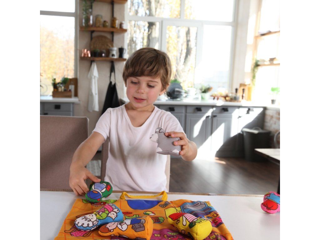 Táto edukačná podložka s hračkami poskytuje hravé učenie o rodinných rolách, podporuje jemnú motoriku, kognitívny a sociálny vývoj detí.
