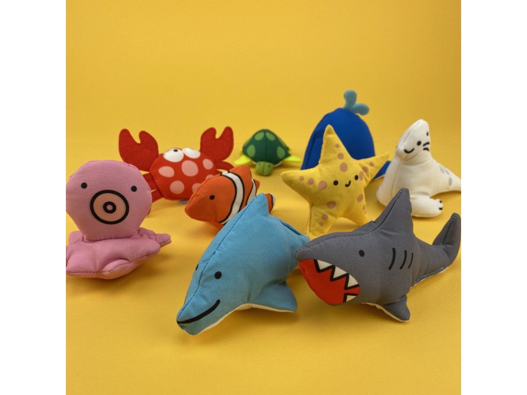 - 9 figúriek morských živočíchov: Zvieratká, ktoré možno umiestniť na podložku.