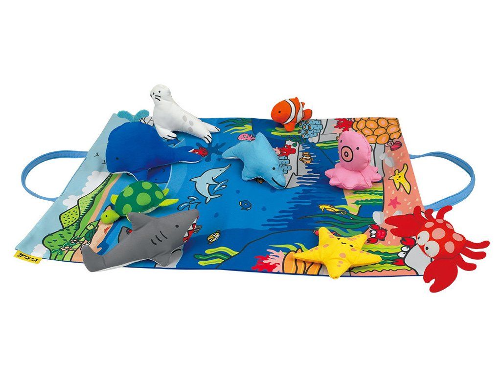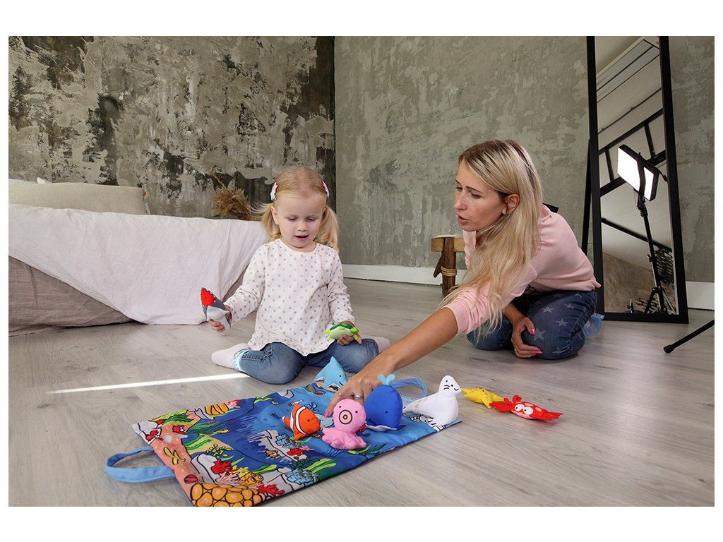 - Hracia podložka - Farebná a prenosná, s obrázkami oceánu a morských živočíchov.