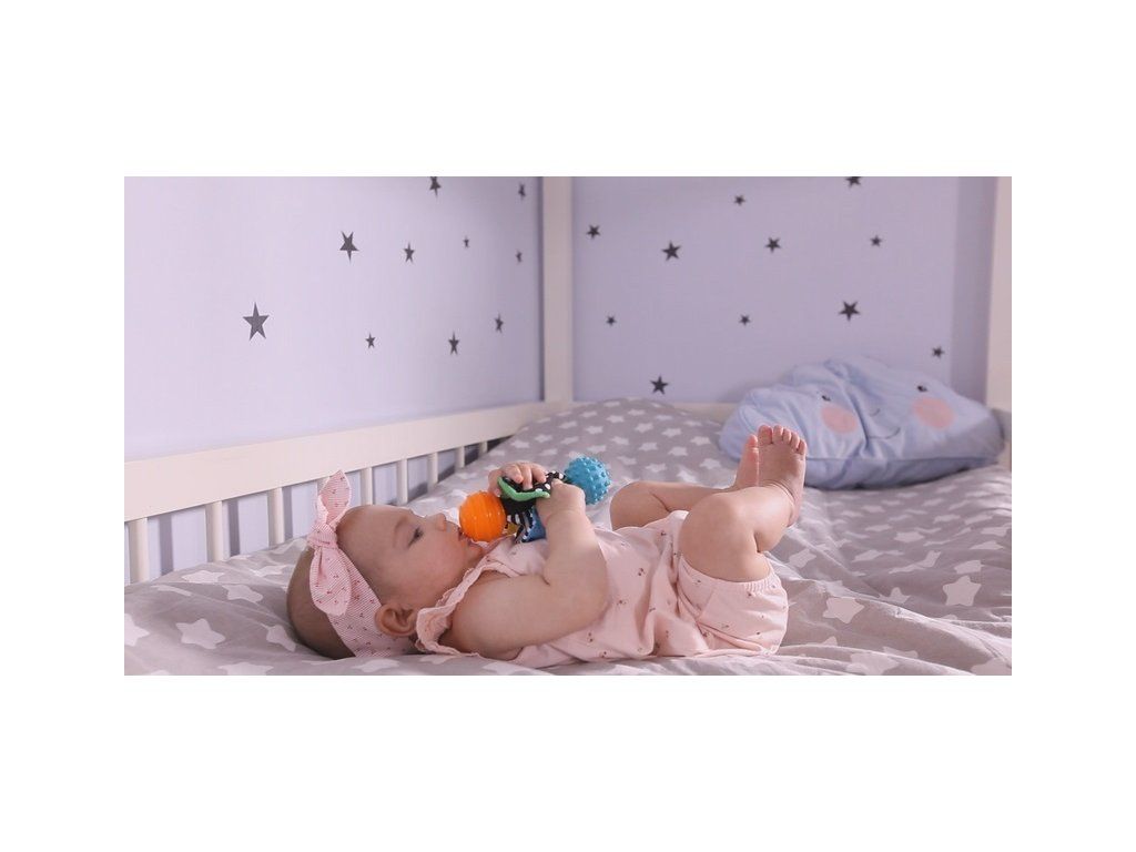 Zmysly: Farebné a rôzne textúrované prvky stimulujú zvedavosť dieťaťa a podporujú jeho objavovanie okolia. Stimulácia zmyslov je mimoriadne dôležitá v ranom štádiu vývoja.